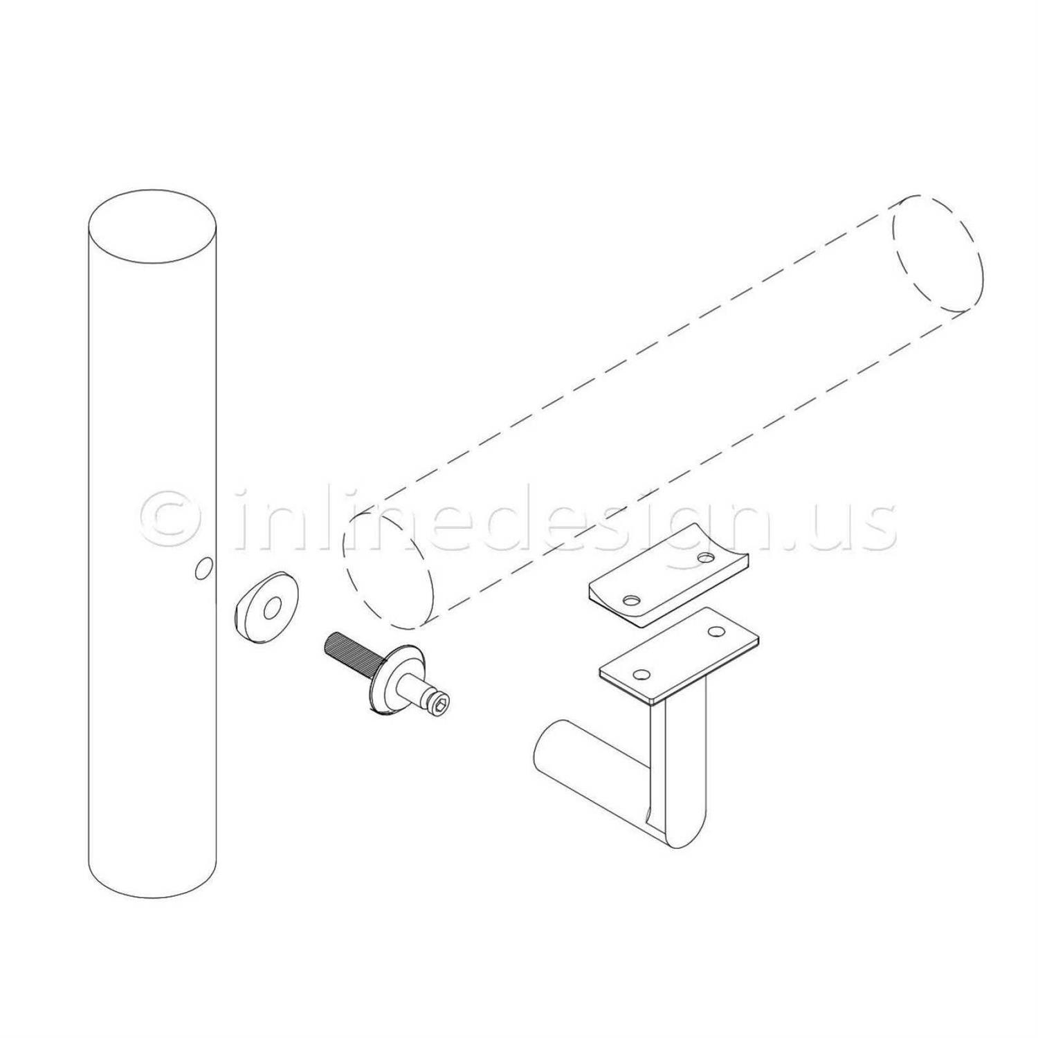 Suitable for flat or round top rail (adapter included) U.S. Design Patent No. D781,688 Satin/Brushed Finish Stainless Steel AISI 316 Marine Grade for outdoor and indoor areas Mountable into wood stud, steel stud, or concrete Suitable for round handrail of 1 1/2″ to 1 3/4″ diameter The Gamma Handrail Wall Bracket (U.S. Design Patent No. D781,688 ) is part of our new Quasar collection. It is sleek and modern in design. It benefits from our new properiatary interchangeable mounting mechanism (U.S. Patent Pending No. 15/192818) which makes it easy to mount to various surfaces such as Wood/Sheet Rock, Steel or Glass. Suitable for round or square/rectangular handrail tubing Parts and tool included with bracket: – 2 x M5 screws to attach the bracket to a steel handrail – hex wrench – Saddle adapter for round top rail, compatiable for 1 1/2” – 2” diameter handrail – 1 x Wall Bracket screw? Hanger Bolt to mount to Wood or Sheet Rock