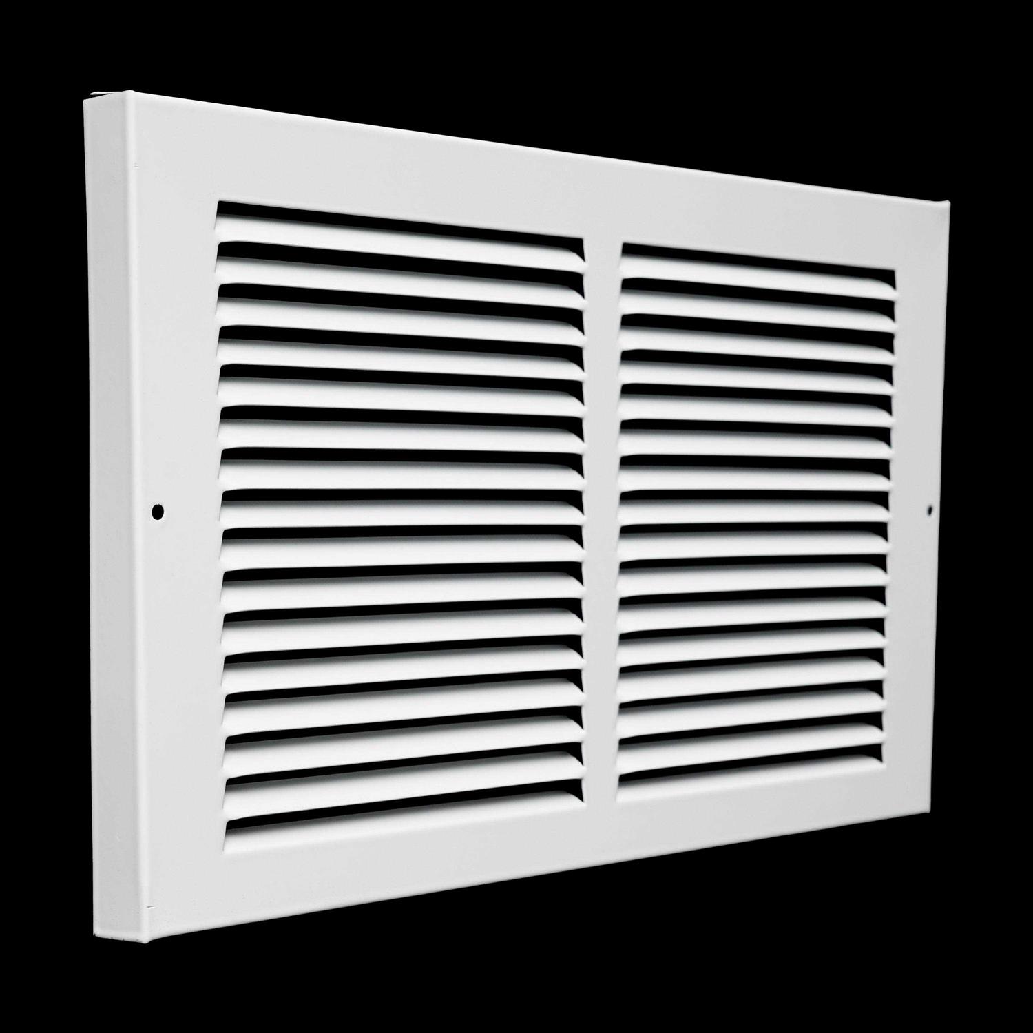 Baseboard Return Air Grille Grille for 14×8 Duct Opening, White, Steel 1/2 inch spaced fins set at 40 degrees. Primary use: Side wall and ceiling. Screws are included with the system, standard. All-steel construction. Durable white powder coated. Standard color is white (Ral9016). How To Measure A GrilleAlways measure the size of the duct opening (the ‘hole’ in the duct/wall). Do not measure the entire size of the register itself. Size of the grille is; listed size +1.75-inch.Understanding Width & HeightIn a grille size, the first number always represents the width and the second one is the height. As an Example: If the hole on your wall/duct is 14 inches wide by 8 inches tall, order 14×8 option. For this particular product you’re viewing at the moment, the hole on your wall/duct opening should be 14×8 duct opening. Click the ‘Add To Cart’ button now to order your Air Supply Grille!