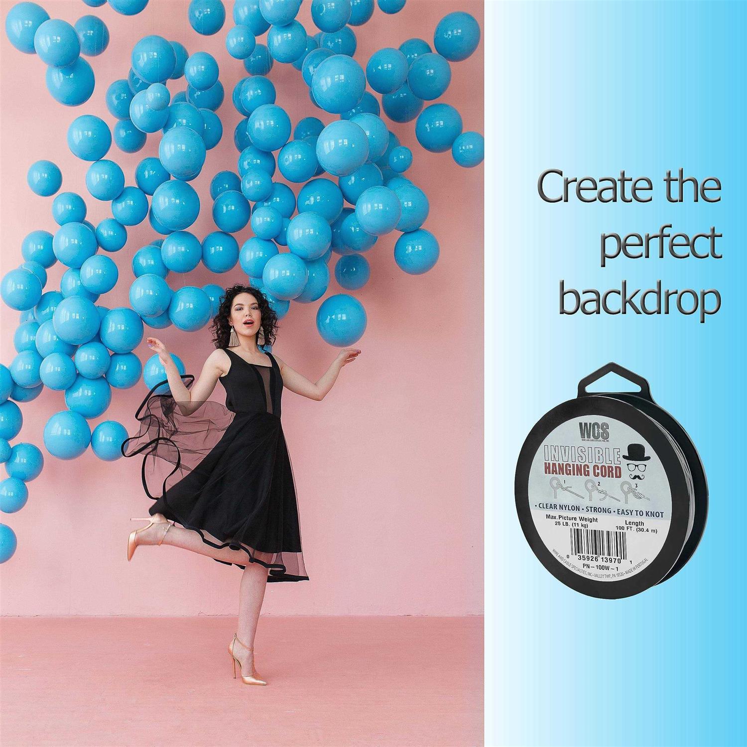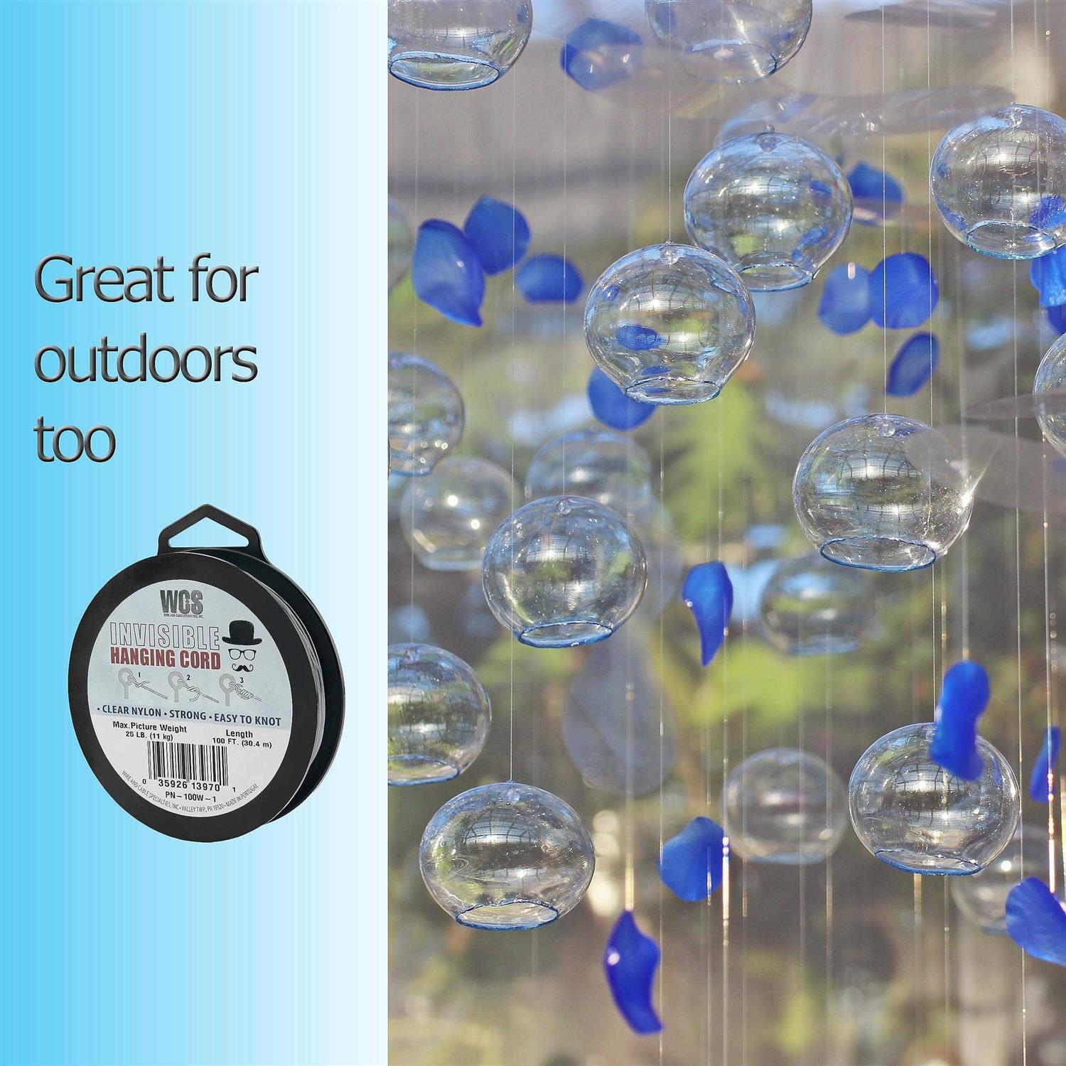 PREMIUM QUALITY NYLON STRING: High-grade nylon is resistant to wear and tear, guaranteeing long-lasting performance. Whether you’re hanging delicate decorations or heavy signs. INVISIBLE STRING: Designed to be nearly invisible, blending into any background. Its transparent nature allows the focus to be on your hanging displays, giving them a clean, sophisticated look. STRONG: Strong as hanging wire but clear making it ideal for a wide range of applications. Have peace of mind knowing that your decorations and signs will remain securely in place. CLEAR STRING IS EASY TO KNOT: Tying knots and securing your items is a breeze, thanks to the cord’s smooth and pliable material. Hanging your decor or signs will remain securely in place. HANGING DECORATIONS: Better than generic fishing line, use the clear nylon thread for all party decor, balloon garlands, photo backdrops, craft string, balloon string, wind chimes, halloween decor
