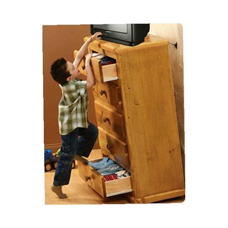 Holds up to 400lbs. Helps prevent injury for children and adults Helps prevent furniture, filing cabinets, and full length mirrors from falling over. Tamper resistant Made of high grade galvanized aircraft steel cable and steel components Prevent large pieces of furniture from tipping over, when properly installed, with this Furniture Anti-Tip Kit! An aircraft grade cable and two steel brackets connects dressers, curio cabinets, chests, entertainment centers, and more securely to the wall. Includes a quick-disconnect clevis pin for easy cleaning behind and around furniture. Rated for up to 400 lbs.