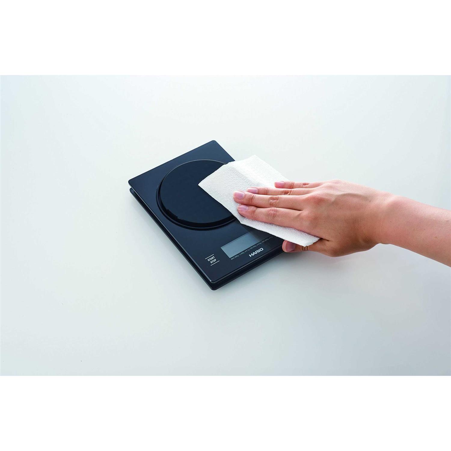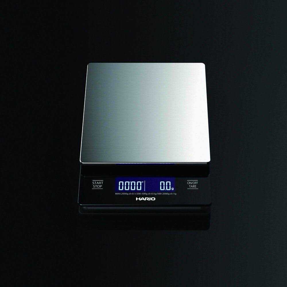 Hario VSTM-2000 Digital Microbalance ️ integrated stopwatch ️ automatic shutdown after 5 minutes of inactivity ️ large enough to weigh a portafilter ️ removable stainless steel surface ️ LCD display with backlight ️ battery life up to 80 hours ️ charging via micro USB cable ️ weighs with 0.1 g accuracy ️ maximum capacity 2000 g Professional scale for perfect V60 preparation The VSTM-2000 micro balance from Hario is the ideal helper for V60 preparation when every gram and second counts. It has a weighing accuracy of 0.1 g and a maximum capacity of 2000 g. Thanks to the integrated stopwatch, you can keep an eye on every second of your favourite coffee. You can see all the values on the clear backlit LCD display. Above all, this scale boasts incredible battery life, which can reach up to 80 hours of operation after a full charge. The automatic shut-off function after five minutes of inactivity also contributes to this.