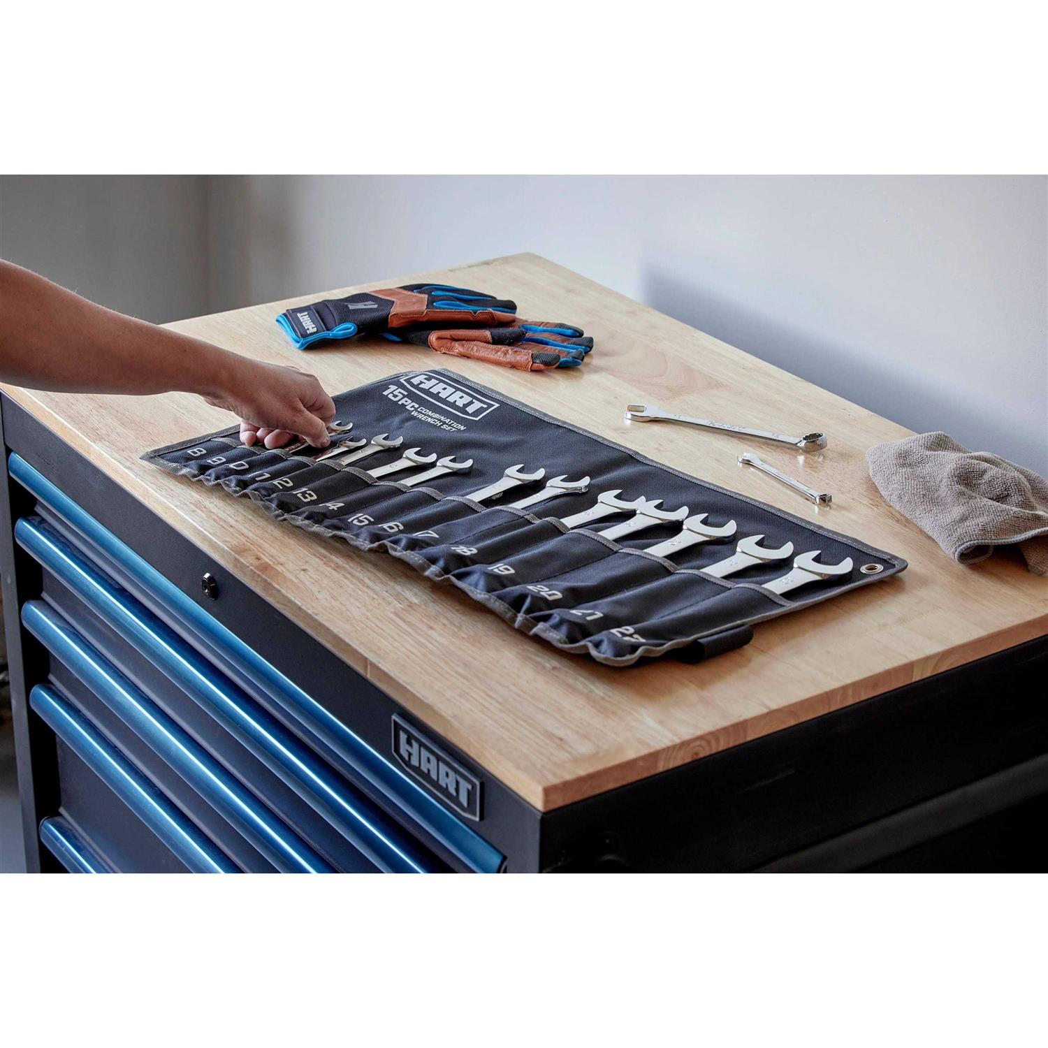 Hart 15-Piece MM Combination Wrench Set with Tool Pouch