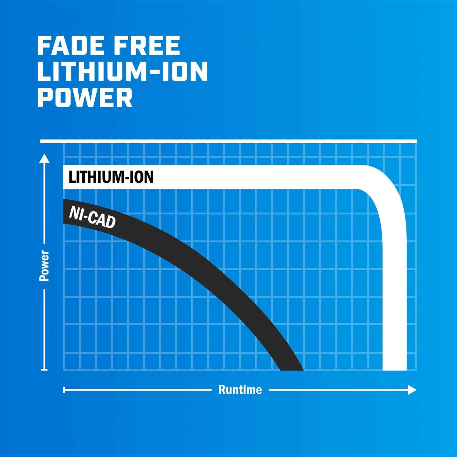 - More power and longer life with zero “memory” effect sets this Lithium-Ion battery apart from Ni-Cad competitors.