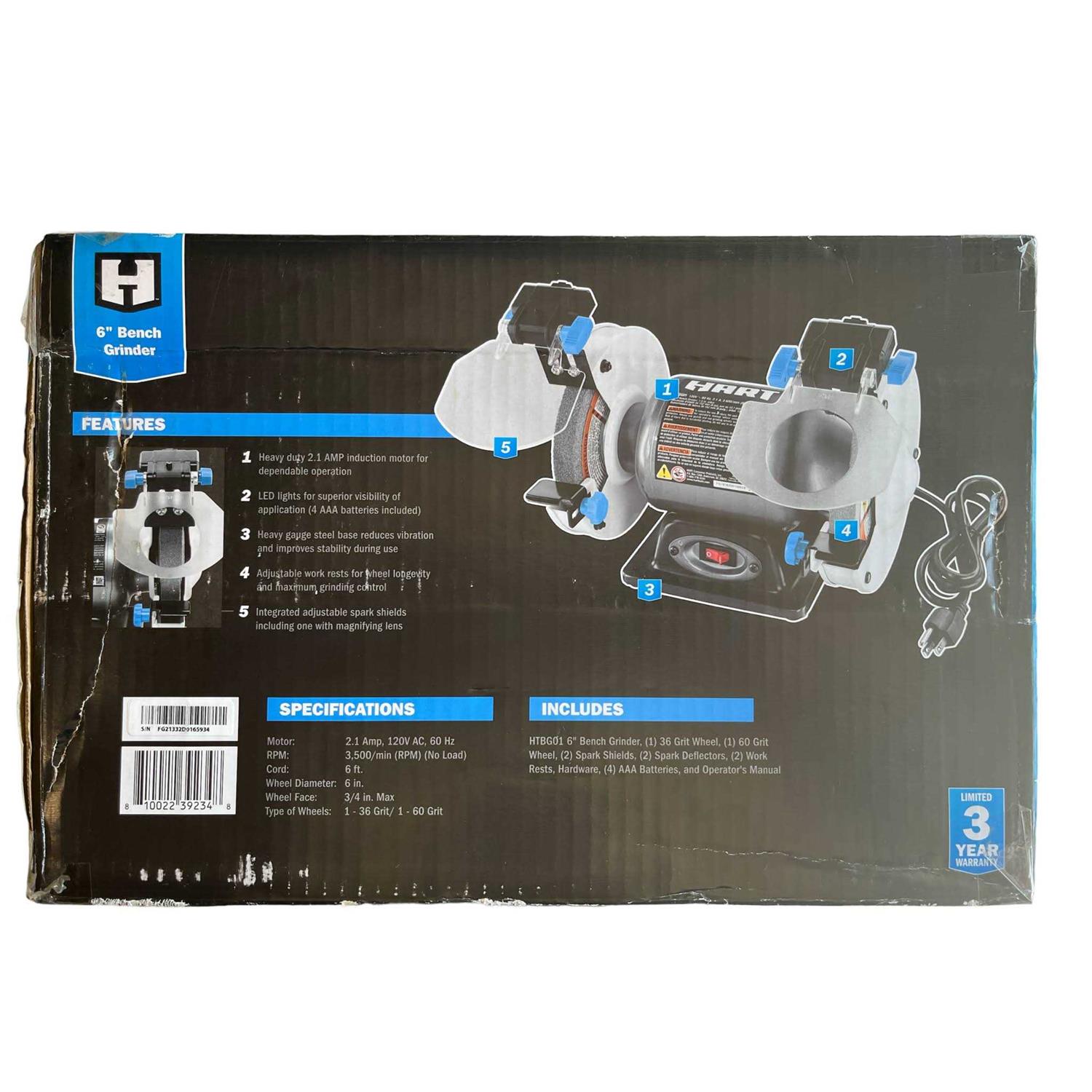 Hart HTBG01 6-Inch 2.1 Amp Bench Grinder