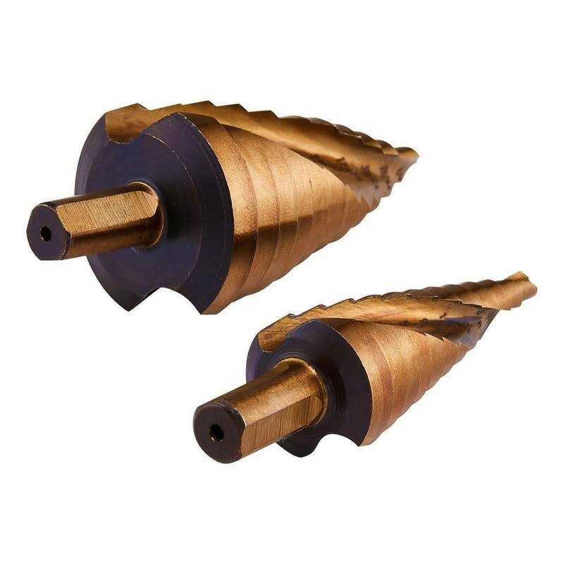 HERCULES super-hard cobalt alloy step bits stand up to heat and tough materials to stay sharper longer. The step drill bits automatically deburr holes as you drill and the spiral-flute design provides faster, smoother cutting. StarterPoint No-Walk Fast Start provides quick clean holes in materials from wood to stainless steel.