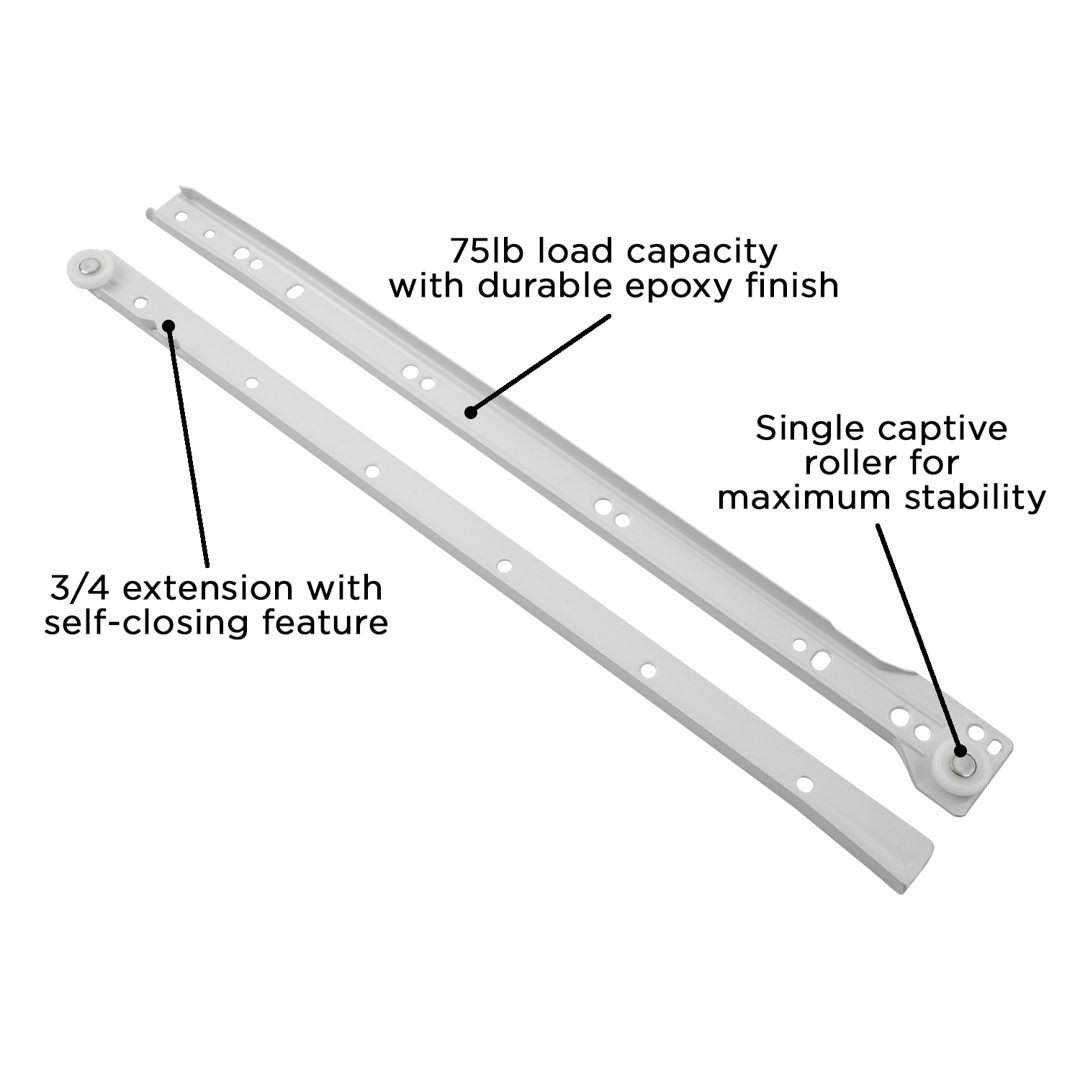 Hickory Hardware P1750/16-W 16-inch Side Mount Euro Drawer Slide, White