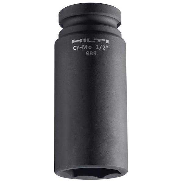 Make an impact. Hilti’s S-NSD line of deep impact sockets offer long-lasting durability under the most stressful applications. Used for fastening lag bolts, steel bolts, high strength steel bolts and concrete screw anchors, S-NSD impact sockets feature a 1/2 in. square drive anvil and are constructed of CrMo alloy steel for added strength, wear resistance and reliability. 3 in. long version provides extra length for fastening in hard to reach areas. Perfect for use on corded or cordless impact drivers.
