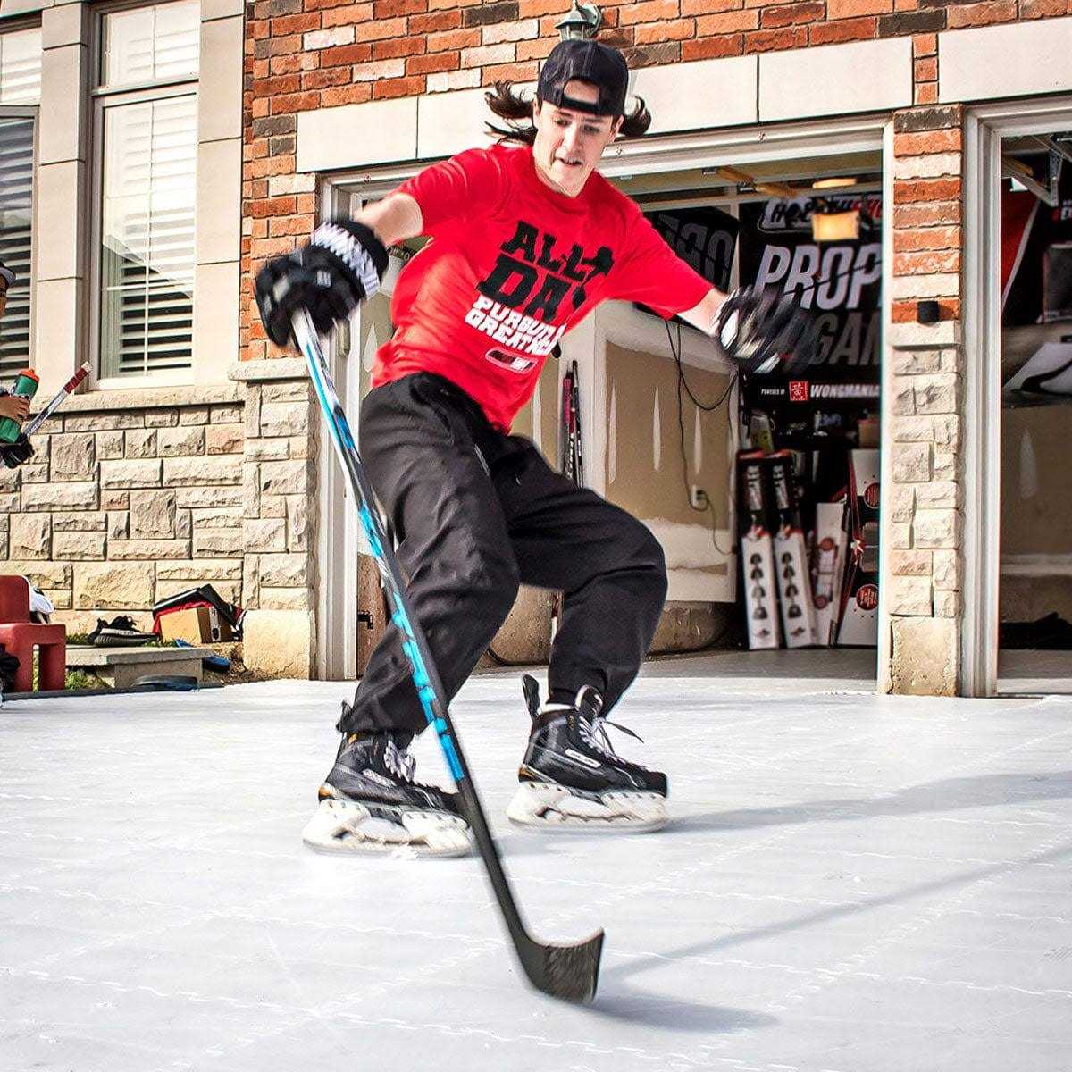 The HOCKEYSHOT Revolution Skate-able Tiles are a smaller, lightweight, flexible synthetic Ice design. You can throw-down and pick-up your artificial ice surface anywhere. Last 3-5 Years.