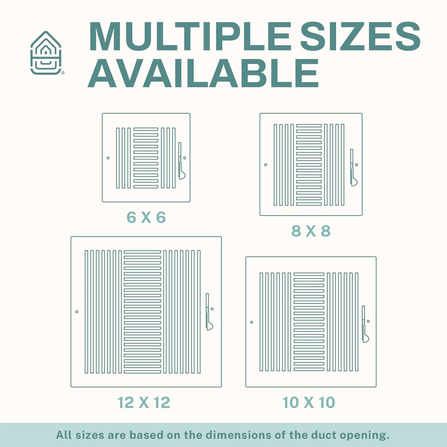 Home Intuition Air Vent Covers for Home Ceiling or Wall-6X6In (Duct Opening) 4-Way White Grille Register Cover with Adjustable Damper WV4W6X6