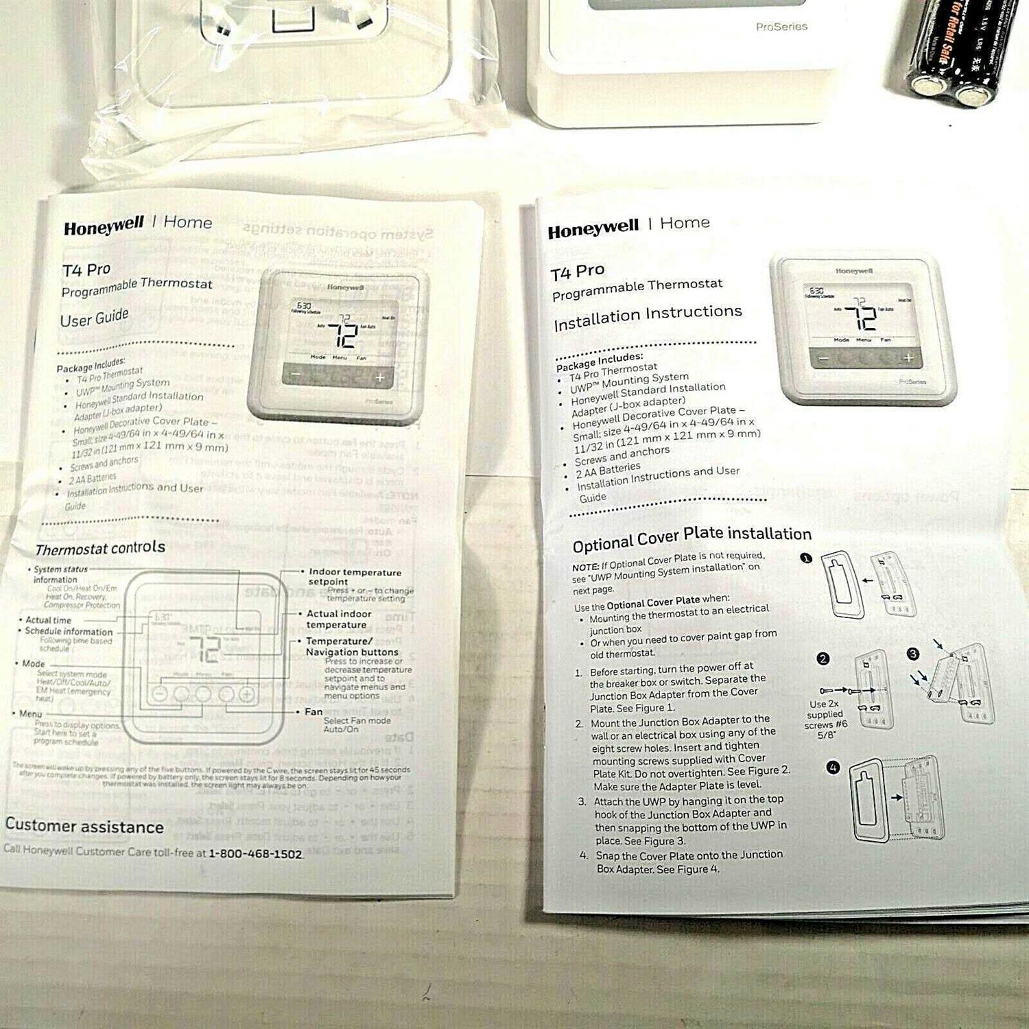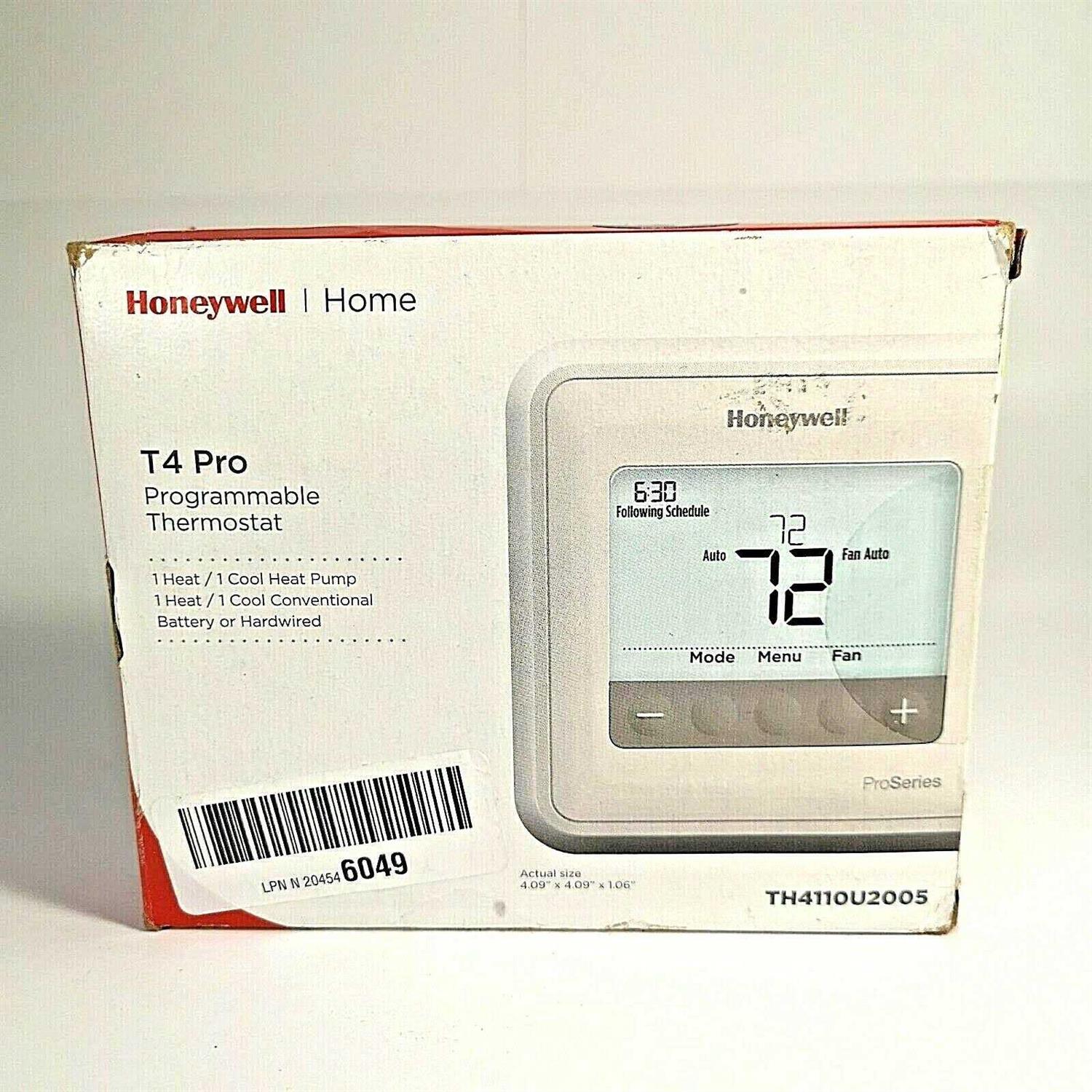 The Honeywell T Series is a portfolio of non-connected and Wi-Fi connected thermostats designed with contractors in mind. With an interface you know, features you trust and the Honeywell quality you depend on in a sleek new aesthetic, the non-connected T Series thermostats are setting the new standard for simple. – T4 Pro – Push-button programmable – Flexible scheduling7-day, 5-2, 5-1-1 or non-programmable – Battery or C-wire – Display size: 3.93 sq. in. – Replaces this Focus – PRO or PRO model: TH6110D1021, TH6110D1005, TH5110D1022, TH5110D1006, TH4110D1007, TH3110D1008, TH2110DV1008, TH2110DH1002NON-CONNECTED SOLUTIONS that simplify selection, installation and upsell. Simple selection: Weve streamlined our legacy portfolio of 20+ non-connected Focus – PRO and PRO thermostats down to just six non-connected T Series thermostats, helping you simplify inventory management and product selection. – Simple installation: All T Series thermostats use the same UWP mounting system, helping you standardize your training program, install process and truck stock. Install one and you can install them all. Simple upsell: The T Series features a snap-together design that enables you to easily move customers from a non-connected to a connected thermostat when theyre ready for Wi-Fi without having to remove the connector and cover plate.