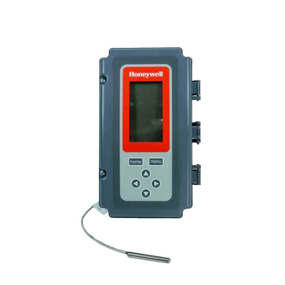 The T775 electronic remote temperature controllers are the next generation of commercial and agricultural controls capable of remote sensing of temperature and providing switched and/or proportional outputs to various types of loads. Features: Save time on installations with the easy-to-use graphical Interface, large display, and the intuitive programming. Use the time clock scheduler or digital input to control the setback and disable output options to help save energy. Protect equipment from freezing or overheating on models with the modulating high or low limit control option. Get pinpoint control on modulating outputs by setting the integral and derivative times (PI or PID). Configure models with reset in a few easy steps. Control floating actuators with floating outputs on select models. Eliminate the need for a separate time delay device and protect equipment with the minimum off time option. Sensor 50021579-001 included with non-NEMA 4X models. Sensor T775-SENS-WR included with NEMA-4X models.