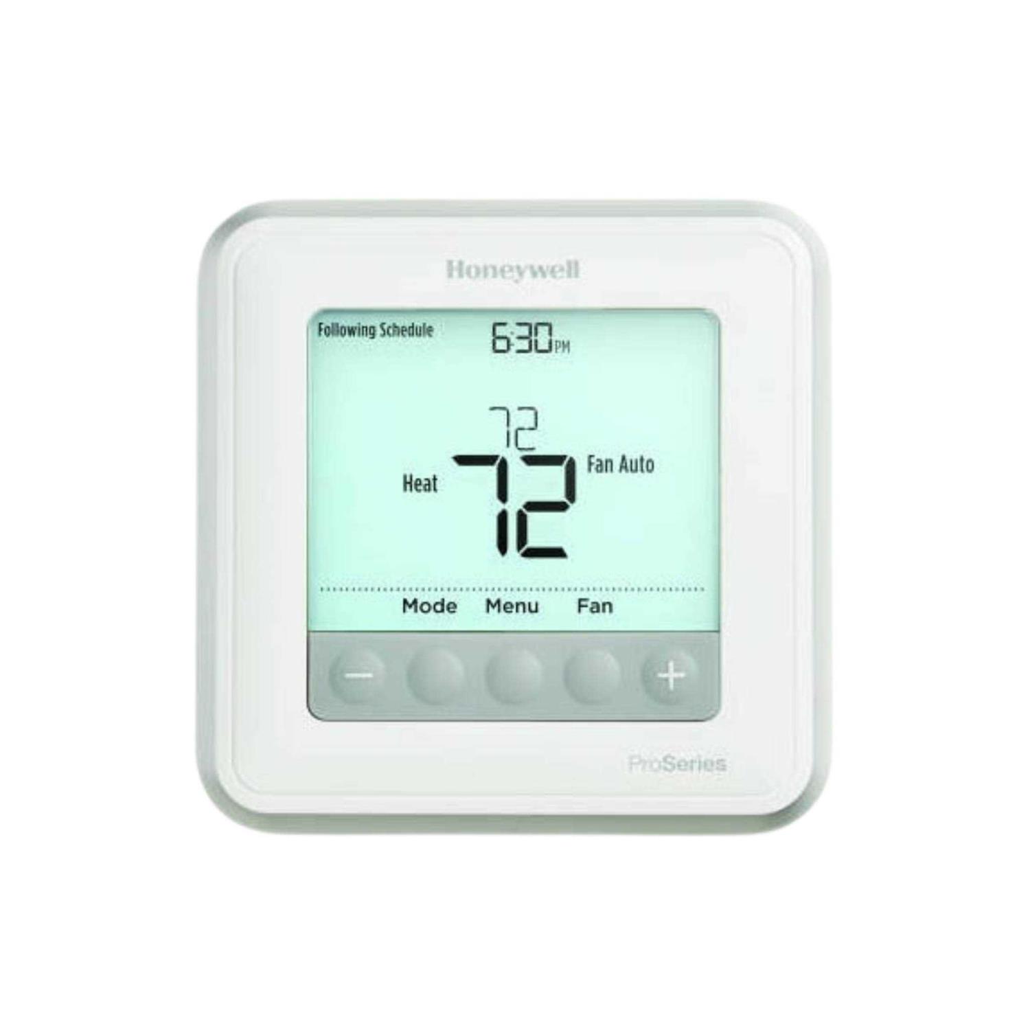Prioritize comfort in your home with the T6 Pro Programmable Thermostat. The easy-to-use thermostat automatically heats or cools your home to maintain the temperature you like the most. With 7-day flexible scheduling, you can program your thermostat for the week ahead and adjust it easily if your plans change. The large backlit display shows the temperature and comes with a real-time clock that automatically adjusts for Daylight Savings Time. Use the temporary or permanent hold settings to override your schedule and receive reminders when it’s time to change the filters or the batteries.