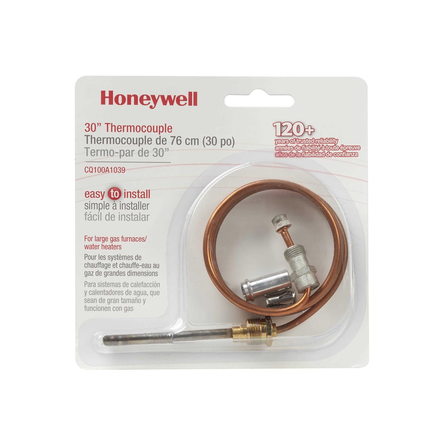 This Honeywell 30 Inch Replacement Thermocouple is an ideal fit for gas furnaces, boilers and water heaters that operate on 30 milivolt systems. This product includes an adapter that allows for easy mounting on most pilot burners. This would include push-in, clamp-in and screw-in burners. Maximum durability is assured as this product is comprised of a heavy and long lasting element that allows for an increased lifespan. Designed for swift installation, the Honeywell Replacement Thermocouple comes with positive positioning.