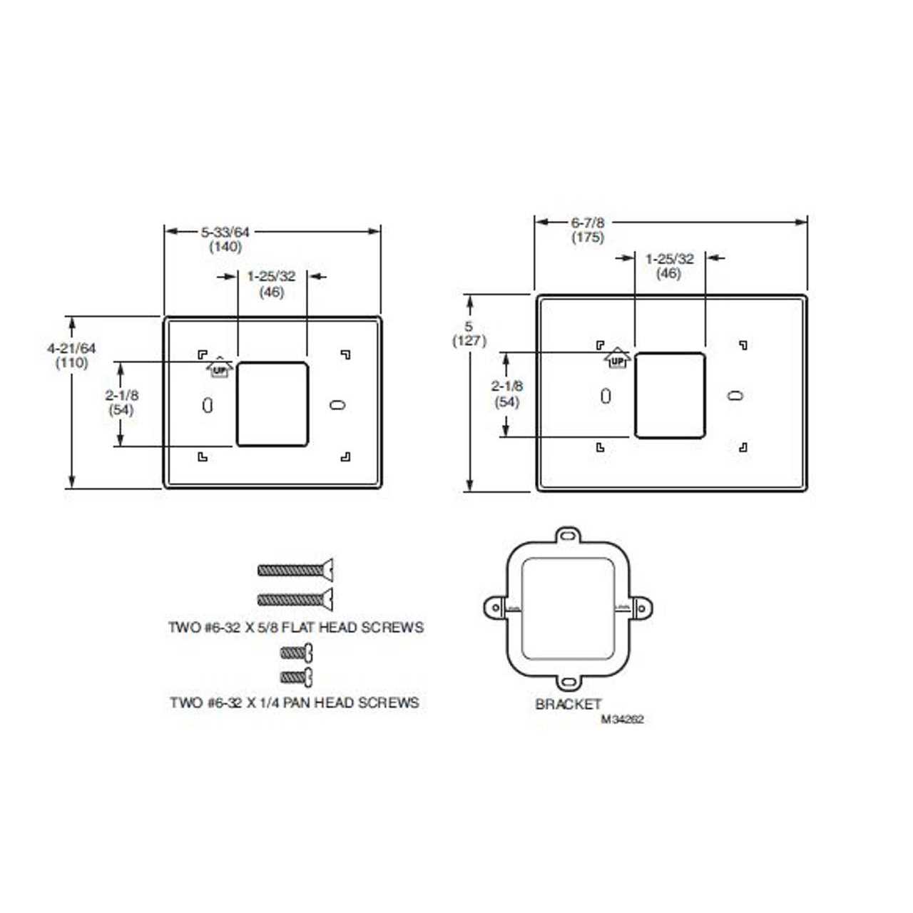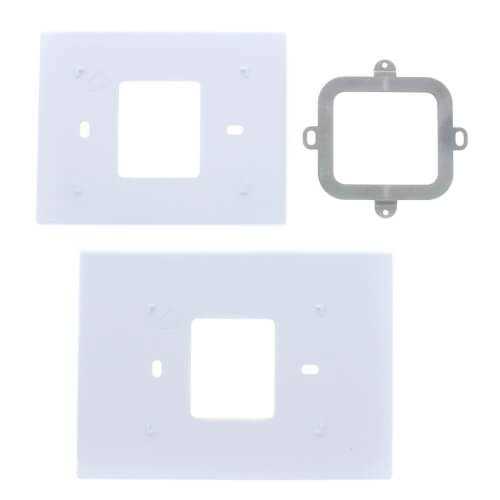 Use to cover marks on the wall or to mount the thermostat to a 2 in. X 4 in. electrical box. Compatible with the Honeywell Home RTH9585WF and RTH9600WF thermostats Color: White Instructions provided for installation Contains cover plate, one bracket, two #6-32 x 5/8 flat head screws and two #6-32 x 1/4 pan head screws. Cover plate assembly. Use to cover marks on the wall or to mount the thermostat to a 2 in. X 4 in. electrical box. Includes a small and large cover plate, one bracket and mounting hardware.