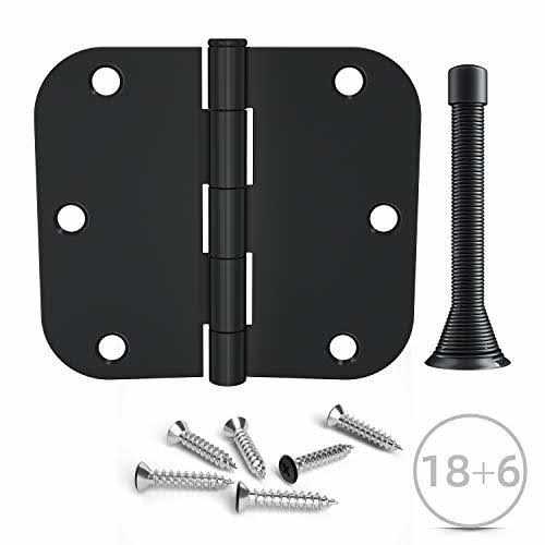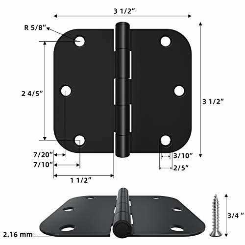HOSOM 18 Pack Rounded Door Hinges 3.5 x 3.5 inch, 5/8 Radius, Matte Black