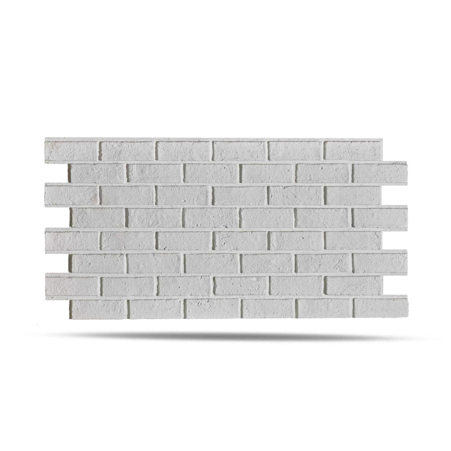 Get the look of real brick with these lightweight, faux brick wall panels in the color Vintage White. Vintage White ClassicBrick panels give your walls subtle brick character and texture. These Vintage White faux brick panels have all the authentic look and feel of brick and will transform your rooms. ClassicBrick panels are made from pouring high-density polyurethane into a mold that was cast from a real brick panel. This process gives ClassicBrick the truly authentic look of real, old-world brick. ClassicBrick panels are available in two different thicknesses, a 1/2” thick & a 1” thick panel. These 1/2″ thick panels are our lightest-weight and most-economical faux brick panel option. They offer a soft brick texture since the grout lines are not as deep as those in our 1” panels. To install the 1/2” panels butt together and a finished look is achieved by running caulking along all horizontal & vertical seams & to cover any screw heads. These panels are extremely lightweight and are simply screwed onto the wall. No need for intense labor or reinforcement of walls like with typical brick wall! Panels are cut with a normal wood saw blade. All that is required for install are a few simple tools and a few hours. However, due to differences in computer monitors, there may be variations in color between the actual product and your screen. It is always recommended to order a sample to confirm exact coloration.