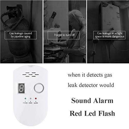 Home gas detector suitable for detecting LPG(Methane), natural gas, coal gas, gas fuel, artificial gas, liquefied petroleum gas, liquefied natural gas etc. Gas Detector offers Voice Notification and a digital readout of the GAS concentration.When gas leak concentration reaches presetting level, the alarm provides a visual and audible signal. 85dB alarm sound, reduce the risk of gas explosion and protect your family’s life and property safety. Gas leak detector adopts Easy-to-install Design, can be used by plugging directly into the power socket to detect leaked gas. This product can be used as independent family alarm equipment, and also can be used as front detector of alarm system. Widely Used for Restaurant, Hospital,Hotel, Oil Factory,Garage, Gas Station etc. The system warm-up time is about 2-3 minutes. During this time period, the gas test will not work. You need to wait for the display to show 0 (the system enters the working state) before it can be tested normally.Gas leak detector adopts Easy-to-install Design, can be used by plugging directly into the power socket to detect leaked gas.