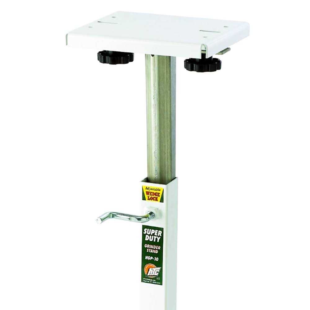 Bench Grinders are a really handy piece of equipment. This fully adjustable bench grinder stand makes them even more flexible by allowing you to setup a grinding station almost anywhere. Featuring a wide stance base adjustable non-skid leveling feet a big 8.5 x 9.5 mounting plate wedge lock inner support and a huge 500lb capacity its a rock solid portable base for your bench grinder. Its also fully adjustable with a height adjustment of 25 to 41 inches. This means almost anyone can work anywhere. The HTC Bench Grinder Stand also fits most bench grinder models including Baldor Delta and many others. The mounting plate is pre-drilled making installation a breeze. If you wish you can add locking casters which then makes it very mobile they are sold separately. HTC is known for quality tools and production-increasing accessories and this bench grinder stand is another testament to that. Add one to your workshop today!