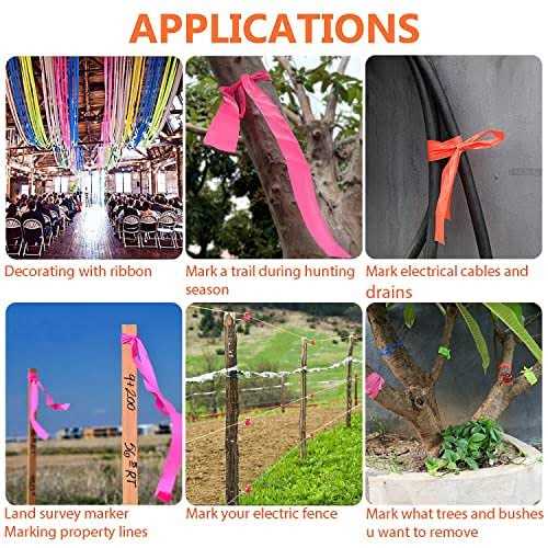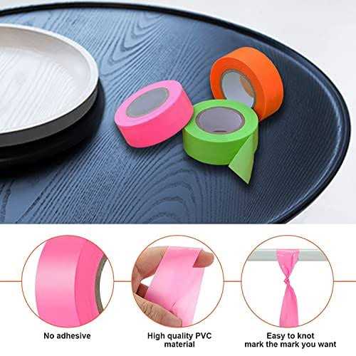 Hubaow 6 Pack Flagging Tape Non-adhesive Plastic Ribbon Neon Marking Roll