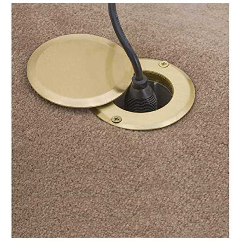 Includes solid brass cover single tamper-resistant receptacle optional device mounts for two 2 voice/data video ports. Suitable for feed through circuitry. Impact resistant box. Drop-In floor boxes are perfect for quick and easy installation of power or low voltage Simply cut a hole between the floor and joists and drop through. The flange lip holds it in place. Line and low voltage options. Strain relief and low profile. It has ample wiring room. Measures 3.4″ diameter by 7.8″ height. UL listed E31999 and CSA certified. NEMA 5-15R. RoHS compliant.