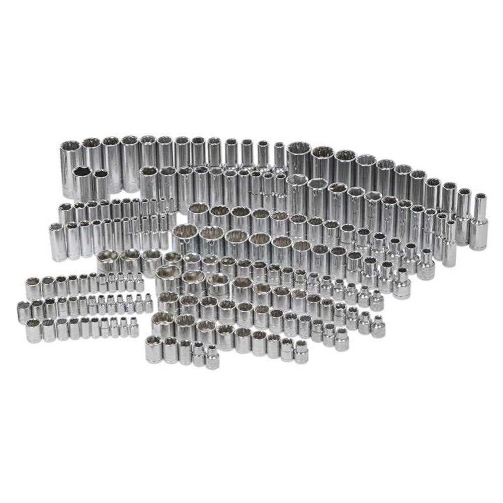 With 200 1/4, 3/8 and 1/2 in. drive sockets, this is the ultimate socket collection from Husky. Each socket features off-corner loading to help prevent the rounding and damage to fasteners. The set offers a wide selection of sockets including SAE, Metric, 12-point, 6-point as well as standard and deep length sockets. This is the perfect set for any DIYer, auto-tech or professional mechanic to update their socket collection with.