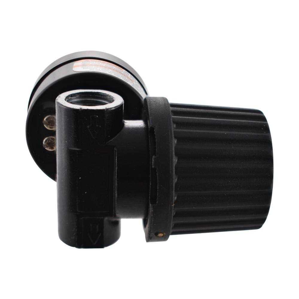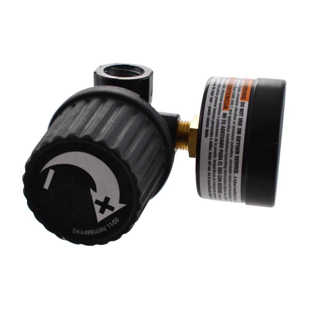 Black Air-Compressor Regulator with Gauge accommodates pressures from 0 – 200 psi and helps maintain steady, reliable operation of your air tools. It has a 1/4 in. NPT inlet and outlet and can be adapted for replacement use on practically any portable air compressor. This regulator features a durable housing with an easy-to-read gauge.
