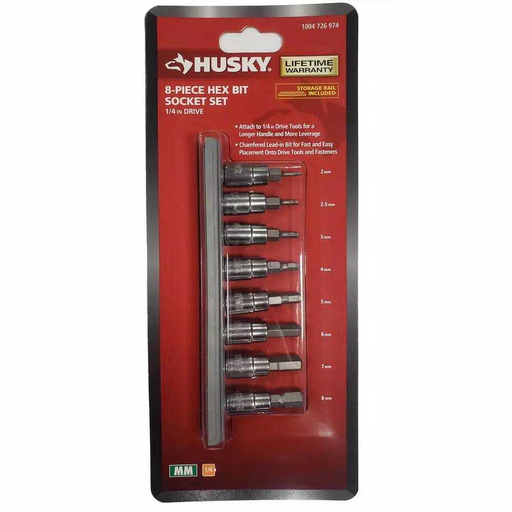 The Husky Metric hex bit socket set is a great addition to any tool box or socket collection. This set comes equipped with 1/4 in. drive bit sockets allowing you to tackle wide a range of projects. Bit sockets give you the advantage of accessing fasteners with the reach and tight arc swing of a ratchet that standard folding or L-keys just can’t match.