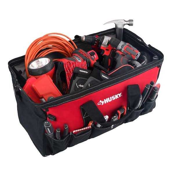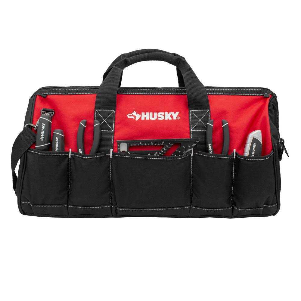 The Husky 24 in. tool bag offers a zippered top with a wide mouth opening for all of your storage needs. This 24 inch tool bag offers 16 large storage pockets to allow for easy tool and accessory selection. Shoulder strap included for easy mobility.