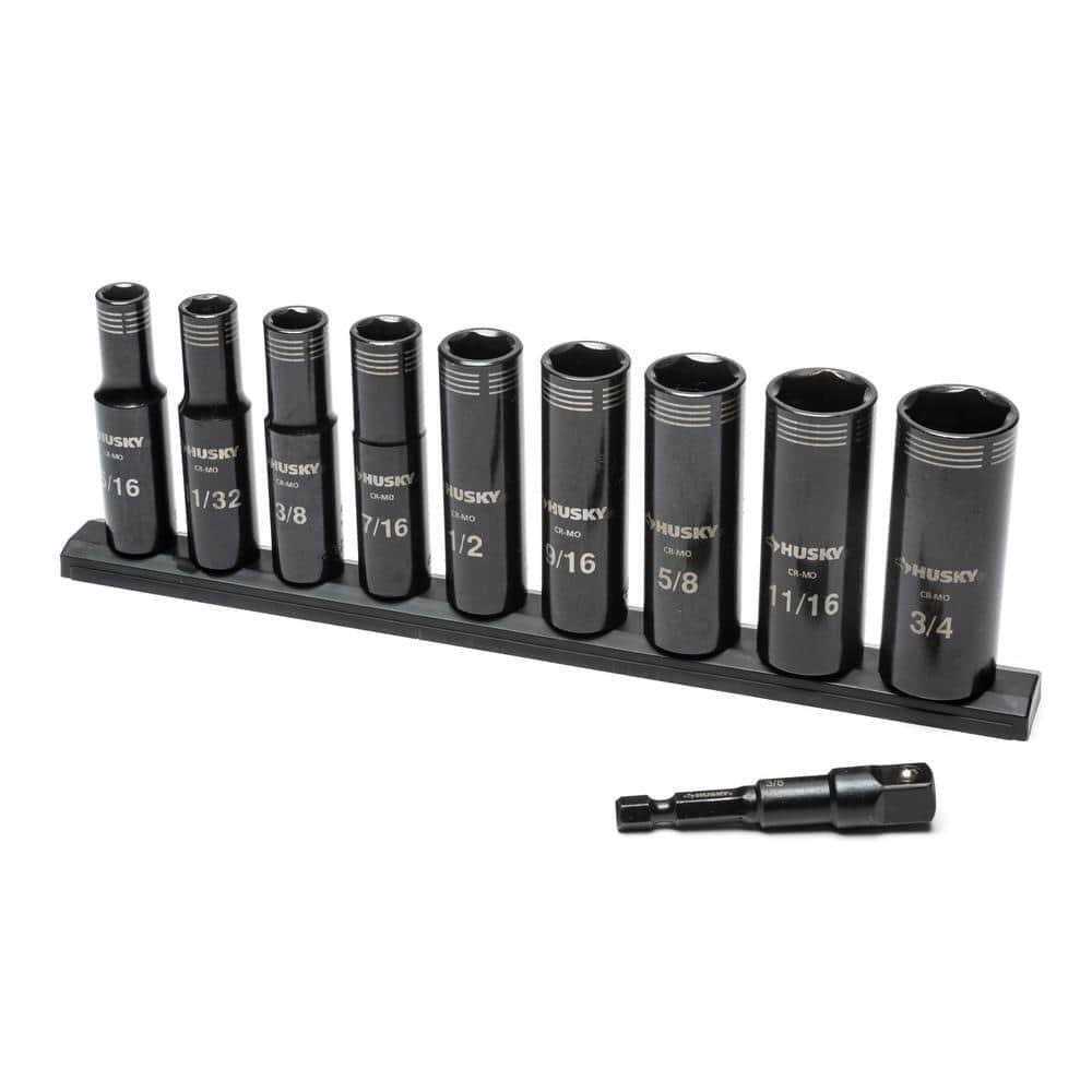 Husky 3/8 in. Drive Thin Wall Deep Impact Socket Set SAE (10-Piece)