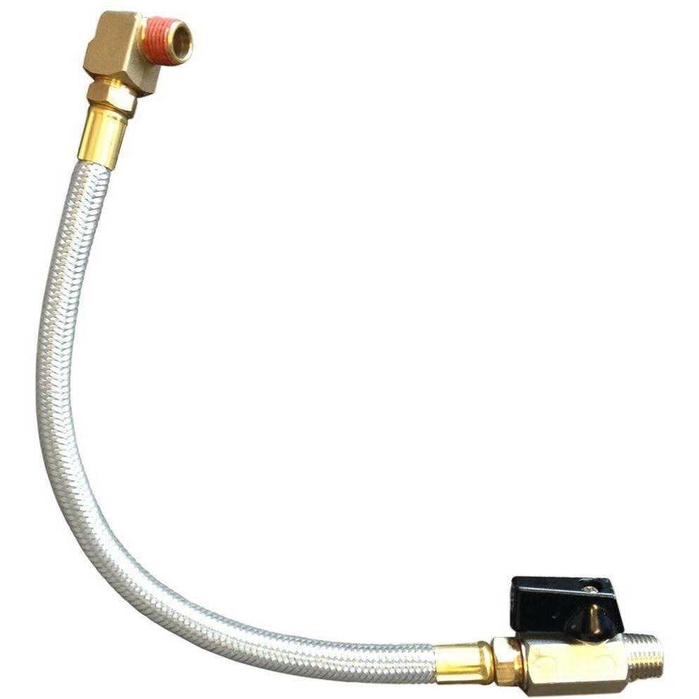 - Includes a 1/4 in. elbow with pre-applied thread sealant, 10 in. flexible braided steel hose and 1/4 in. quarter turn drain valve