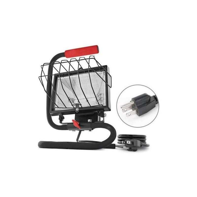 Choose reliability and durability with the Hyper Tough 500W Halogen Free Standing Portable Work Light. This portable work light features one halogen light bulb and a tempered glass lens with metal grill for long-lasting protection. The light also has shatter-proof reflectors encased in durable cast aluminum for maximum brightness – up to 4500 lumen. The handle of this Hyper Tough work light is foam-covered for heat protection and the steel stand is adjustable. The halogen work light requires electricity to operate and has a 4 foot cord. Illuminate your work space with the Hyper Tough 500W Halogen Free Standing Portable Work Light.