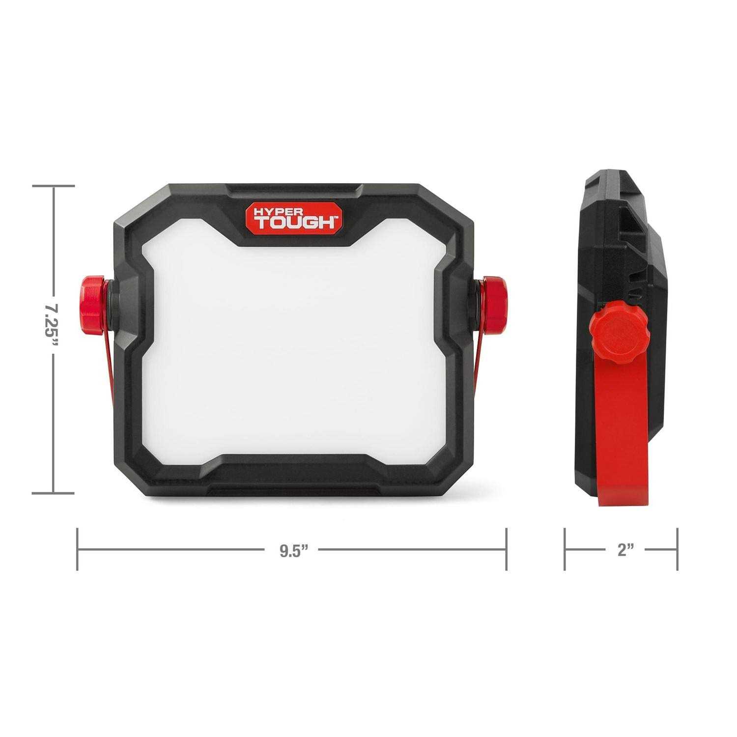 Choose reliability and longevity with the Hyper Tough 50W LED 5000 Lumen Rechargeable Free Standing Handheld Portable Work Light with Frosted Lens in black and red. With improved design, this powerful COB LED work light features a frosted lens to help diffuse the bright 5000 lumen light output which is rated for 50-watt. The light is easy to operate using the High/Low button. Included with the work light is a rechargeable Lithium Ion battery that comes with a 70-inch charging cord with USB port, removing the need to frequently change light bulbs and helping you save on valuable time and costs. The Hyper Tough work light has an integrated 180-degree swivel and foldable handle for easy storage and portability. With the equipped magnets on the back of this light, hands-free use is enabled allowing the light to stick to job site surfaces. The corners have also been reinforced for extra-durability and the light is 1-meter impact resistant. Perfect for workspaces, illuminate your work area with the Hyper Tough 5000 Lumen LED Rechargeable Handheld Portable Work Light.