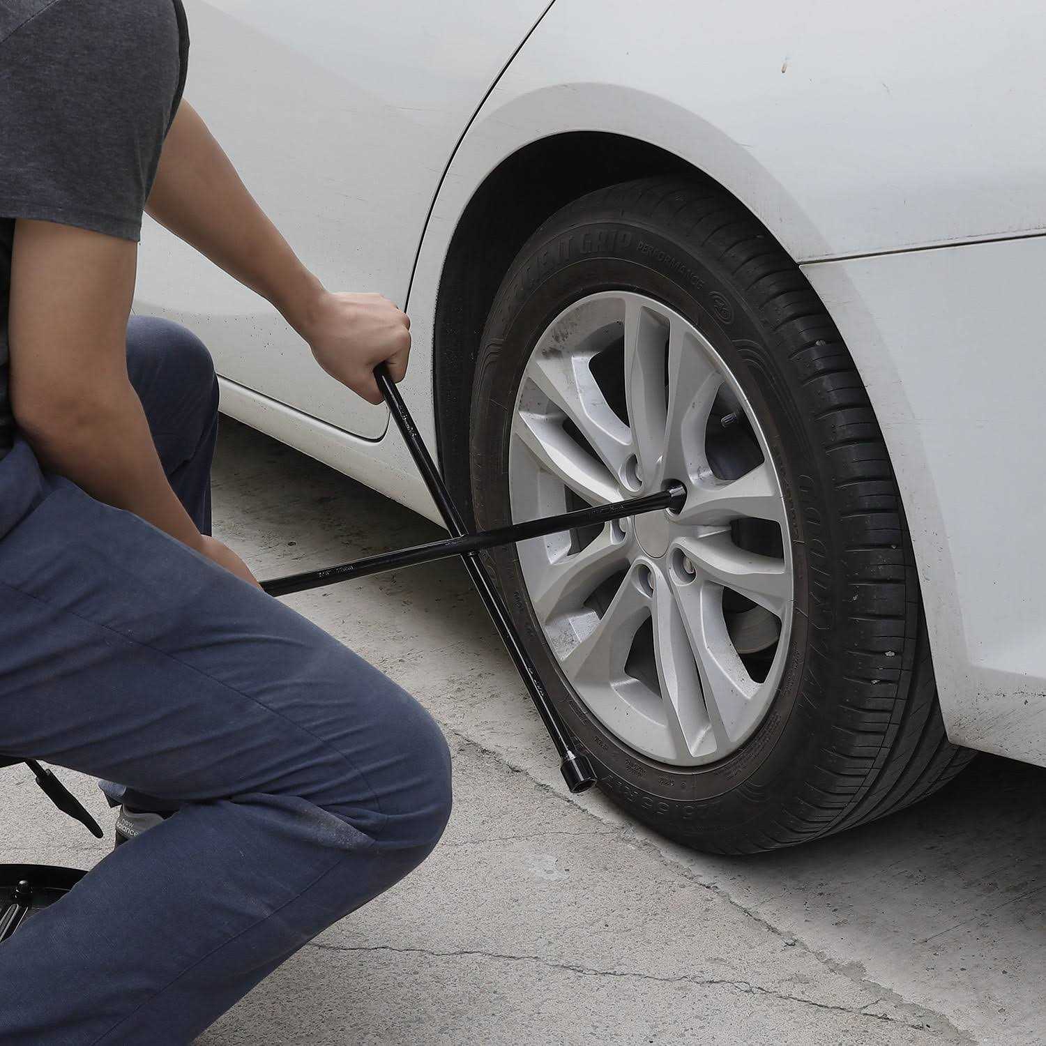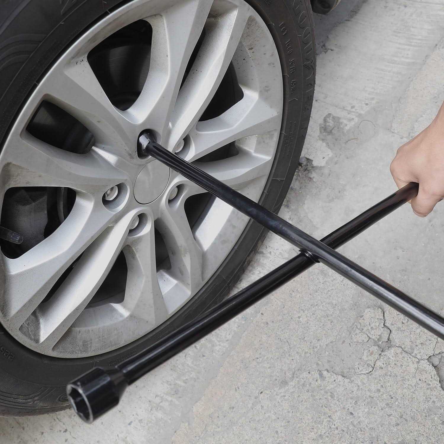 This Hyper Tough make changing tires simple and quick to get you back on the road. This tool is recommended to use by keeping in your car or truck just in case you need to change your spare tire. This 4-way wrench uses both metric and SAE measuring in both millimeters and inches (17mm (11/16 inch), 19mm (3/4 inch), 21mm (13/16 inch), 22mm (7/8 inch) and works for most cars, SUVs, pick-ups and vans. The entire piece is 20-inch long and painted black. Its classic machine welded-cross design allows for two-handed leverage to break loose the most stubborn lug nuts.