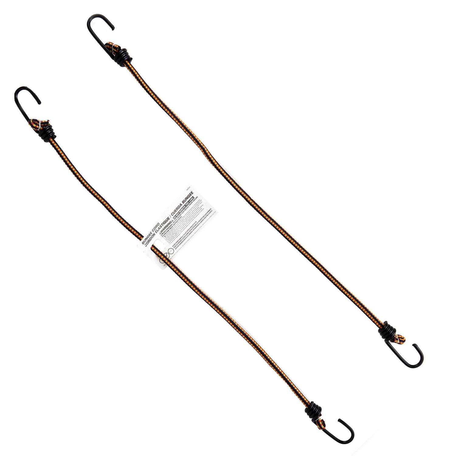 Keep your belongings secure and tied down with HYPER TOUGH Bungee Cords. These convenient Bungee Cords allow you to keep things in place without tying any knots. Even better, they absorb shocks to keep your belongings safe. The bright red, yellow, and black design will keep these cords visible so you are unlikely to misplace or lose them. This two pack of cords are optimally sized, measuring 24 inches (61 cm) long. Use them in tandem to keep larger items safely in place.