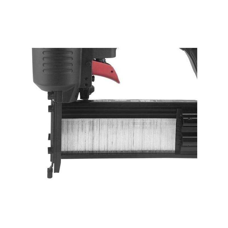The Hyper Tough HTBR50 Pneumatic 18-Gauge 2 inch Brad Nailer with Nails (200 count) gets the job done when tackling trim work, crown moulding, base boards, chair rails, window casing, and picture frame assembly. This durable air powered nail gun is compatible with 18 gauge brad nails from 5/8 inch to 2 inch, and is ergonomically constructed to use for longer periods of time with less fatigue. Features such as tool-free depth adjustment, comfort grip handle, no mar safety tip, 360 degree adjustable exhaust and reload indicator ensure professional results for DIYers at home as well as construction contractors at the jobsite.