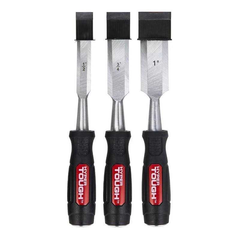 The Hyper Tough Wood Chisels are the perfect tools to add for your wood working needs. There are three chisels in this set, 1/2-inch, 3/4-inch and 1 inch. All have comfort grip handles. These wood chisels have a honed straight edge for precision cutting when you need it the most. Hyper Tough features a full line of hand tools, rotary tools, power tools, tool accessories, and tool storage. When you’re ready to make repairs or tackle home-improvement projects, Hyper Tough is ready.