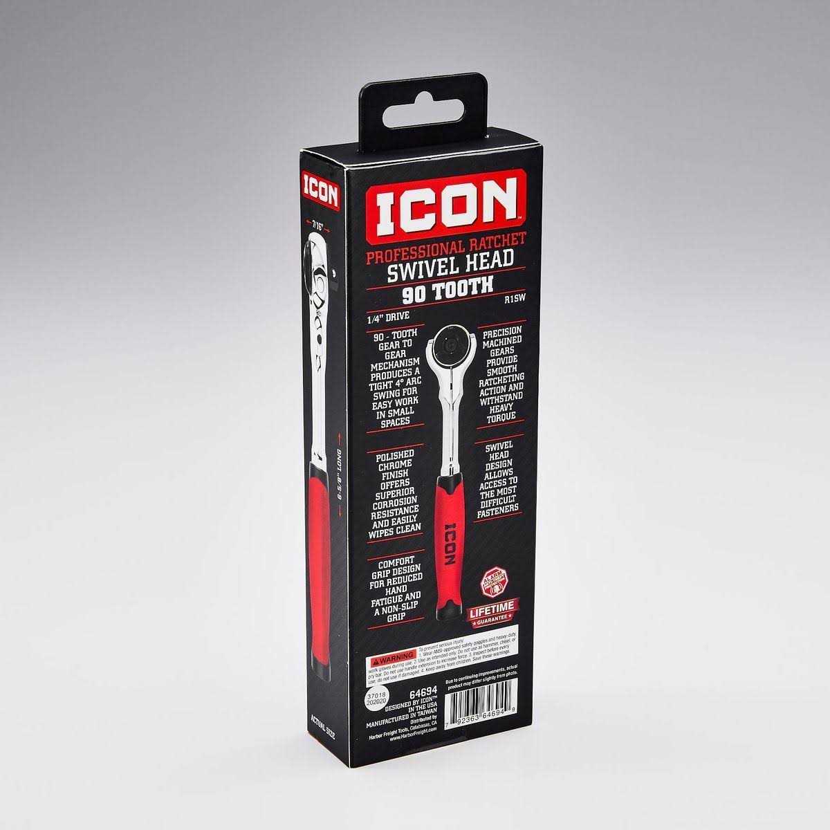 Icon Tools 64694 Professional Ratchet Swivel Head 90 Tooth 1/4″ Drive
