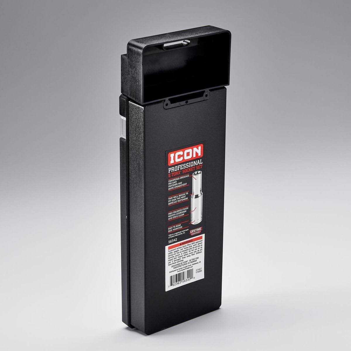 ICON sockets are among the best available on the market. All ICON sockets have a 6-point design for maximum torque, chamfered socket openings for quick fastener engagement, and a thin wall design for easy access on difficult fasteners. These E-TORX sockets are design to replace and remove star type fasteners found in motorcycles and other vehicles.