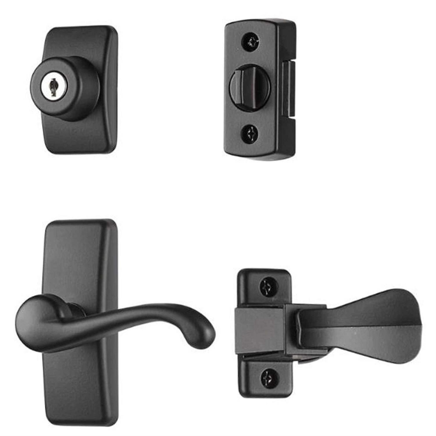 This deluxe storm door hardware set includes an elegant lever handle, interior latch, and keyed deadbolt It is compatible with most pre-installed surface mount handles, and compliments a wide range of decor styles.Please note that it does not replace any other mortise handle sets. The elegant and easy to operate handle replaces the basic push button handle that may already be on your screen door. The interior latch features an easy opening push movement. The matching keyed deadlock lock is not a high security lock, but a secondary level of security that provides additional security. The long-lasting finish will provide an added touch of class to any storm door. This set includes everything needed for installation and will fit doors from 1″ to 2-1/8″ thick. Installation should take about 30 minutes. When replacing an existing handle, the screw posts for the handle must be 1-3/4″ apart. For new installations, three additional holes are required to be drilled through the door for the screws and spindle. The lock can be installed above or below the handle, depending on your preference. The spindle for the deadlock may be cut for your particular installation. A tape measure, drill and screw driver will be required. A center punch to mark the holes is helpful. Before drilling, ensure that the inside latch and lock do not interfere with the operation of your main door handle. If they do, raise or lower the storm door hardware. Ideal Security has been supplying quality hardware for over 65 years. Please explore our other door and window hardware products for your home.PROP 65 WARNING: This product can expose you to some kind of chemical, which is known to the State of California to cause cancer.