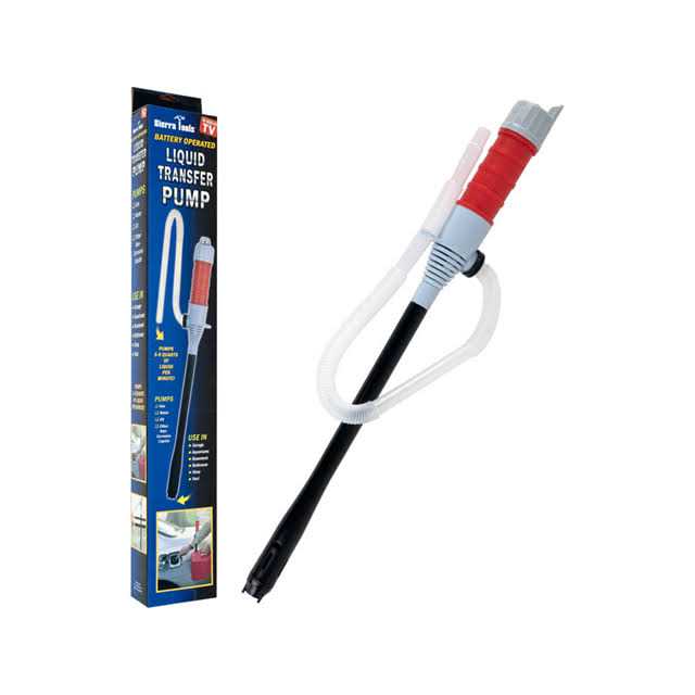 Transfer oil, gas, water, anti-freeze and more quickly, easily and without making a mess! Battery-operated liquid transfer pump is perfect for everything from draining aquariums and siphoning gas to pumping water out of your boat and replacing vehicle fluids! Now you don’t have to jerry rig a siphon to transfer liquids. This pump gets the job done at the touch of a button! It pumps up to 1-1/2 gallons per minute with virtually no effort. Plus, its special design makes spills a thing of the past – no messes to clean! 2 ‘D’ batteries (not included). Model may vary. Perfect for winterizing cars and boats, preparing snowmobiles and ATVs for storage, keeping your aquarium clean and more!