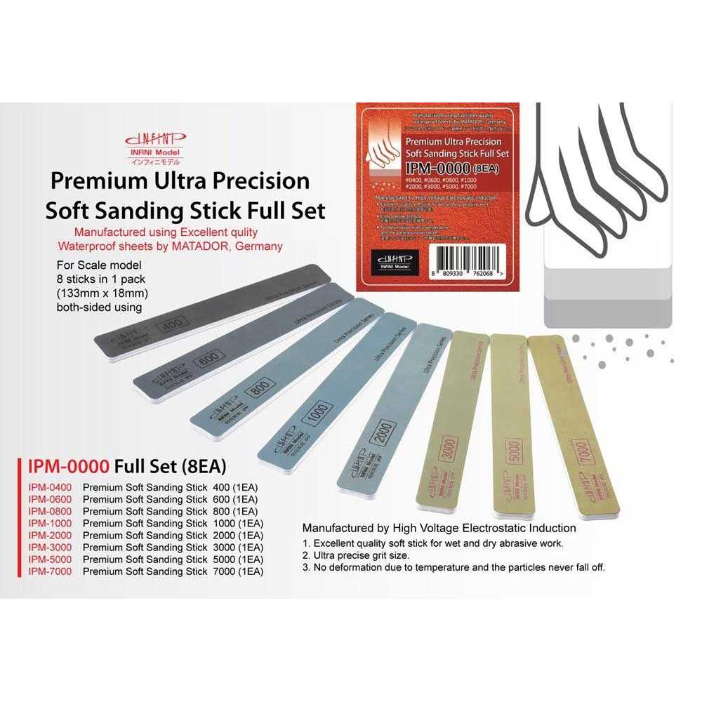 Infini Model Premium Ultra Precision Soft Sanding Stick Full Set #400-7000
