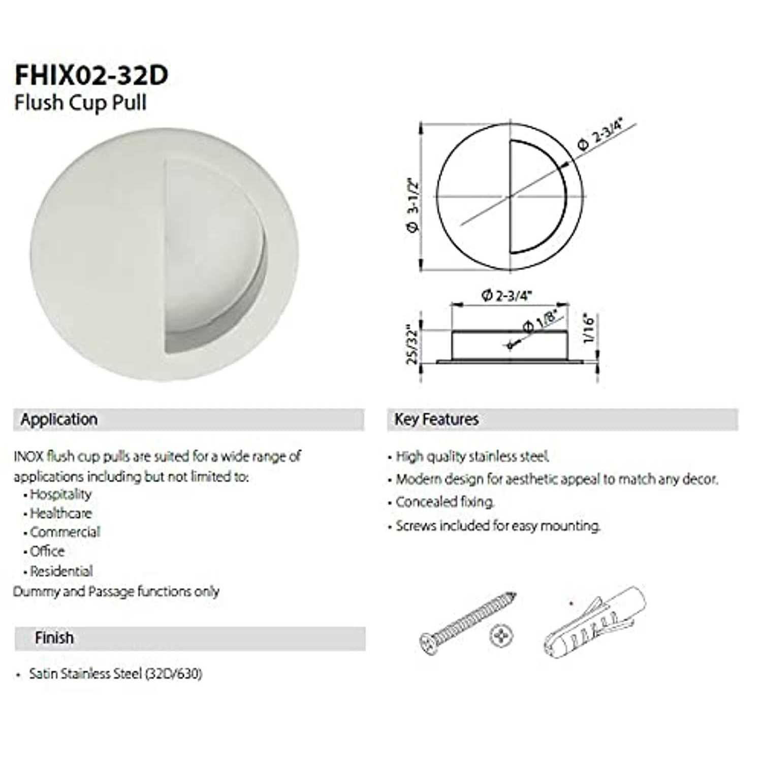 INOX FHIX02-32D Concealed Fixing Round Pocket/cup Pull with Semi-Circular Opening, Satin Stainless Steel