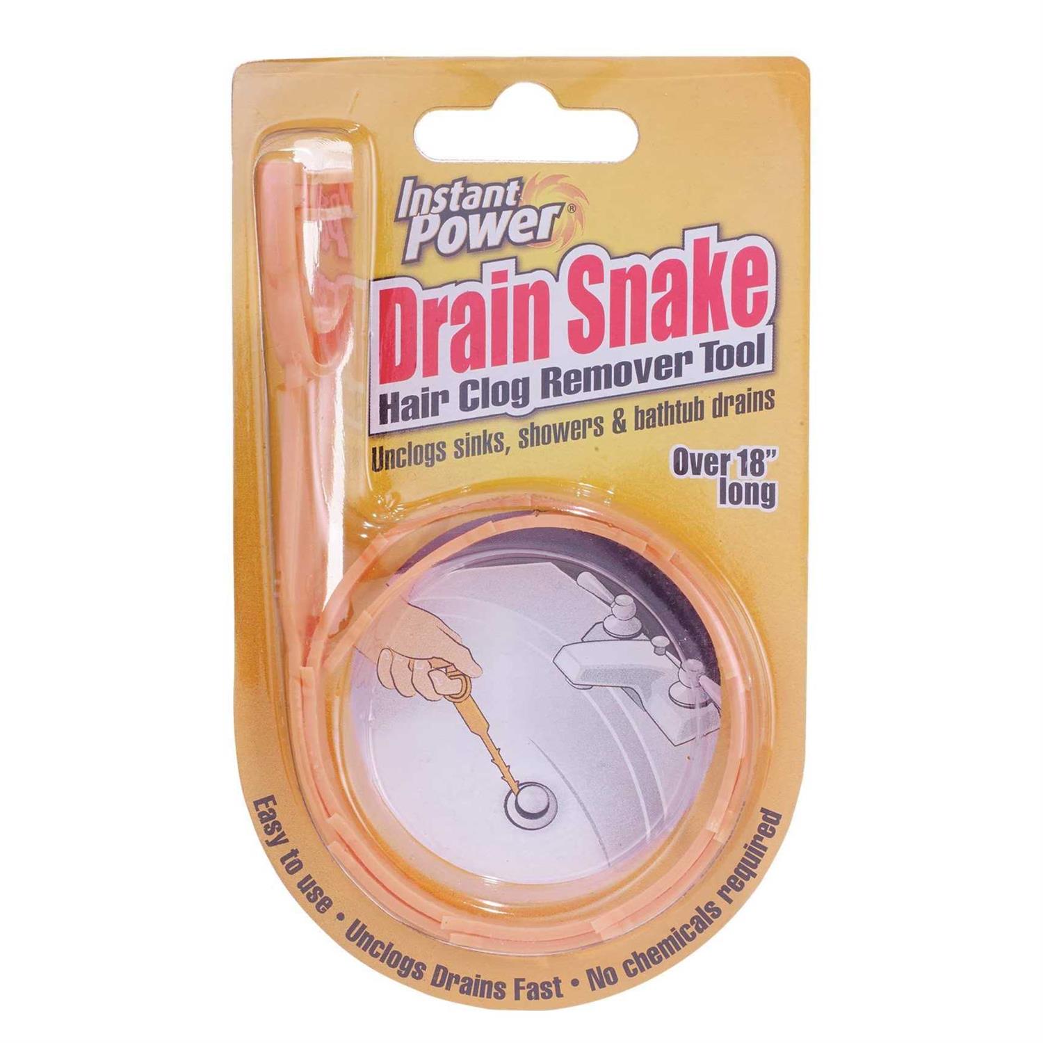 Quickly and easily clear your clogged and slow running drains with this durable plastic tool. Without the need for chemicals, this 18 inch long drain snake removes hair trapped in sinks, showers and bathtub drains.