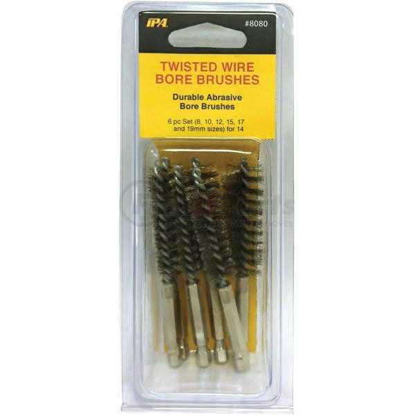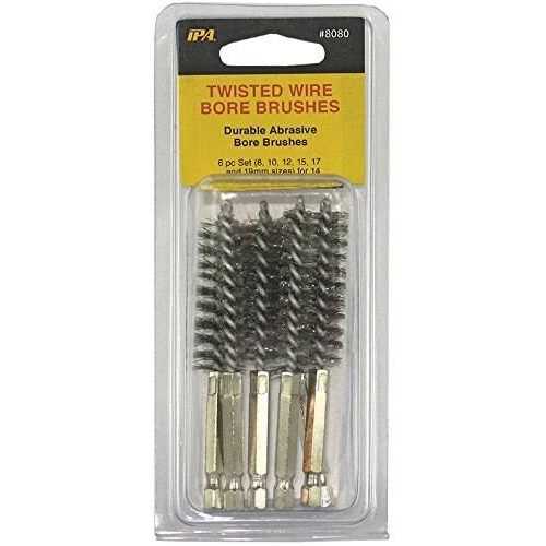 IPA Tools 8080 Twisted Wire Stainless Steel Bore Brush SetThis durable. abrasive bore brush set of stainless steel brushes features the most common sizes for cleaning tubes. ports. bearings and other general wire brush applications. Twisted wire increases cleaning action. Each brush is fitted with a hex shaft for use with a standard driver.