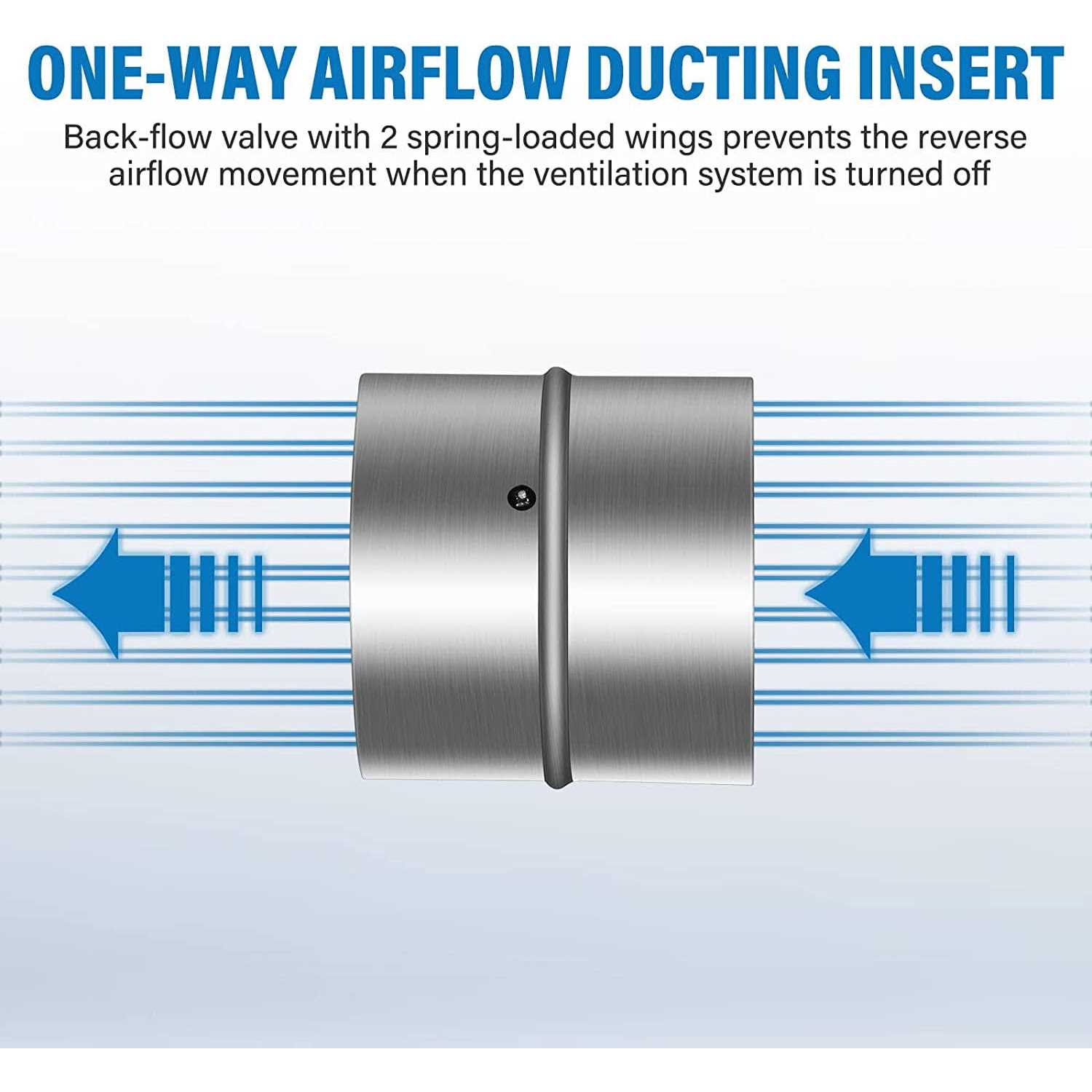 Backdraft Damper A one-way airflow duct tool designed to prevent exhausted air and odors from sweeping back into ventilation systems Wide Applications Back draught valves can be inserted into ventilation ducts which are flexible or non-flexible. Designed for use with range hoods, bathroom fans, kitchen and other home HVAC applications. Essential for HVAC ventilation