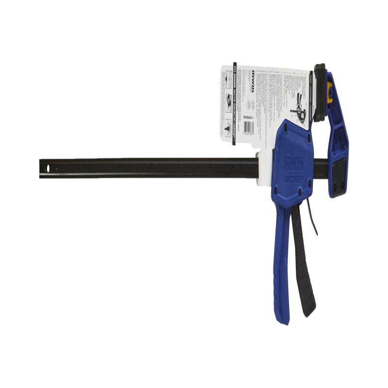 For woodworking, scale modeling or any extra help in your home-improvement project, turn to the Irwin Quick Grip Clamp, 524QC. This combination clamp and spreader with a one-handed clamp delivers 300 lbs of sustained force. The quick-grip bar clamp has a locking swivel jaw that conforms to uneven work surfaces and ensures evenly distributed clamping force. A one-handed quick-release trigger allows for fast positioning.