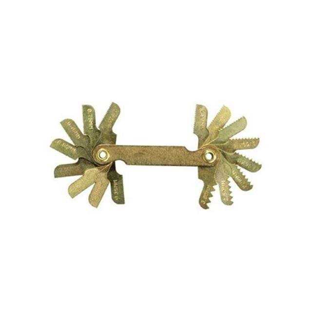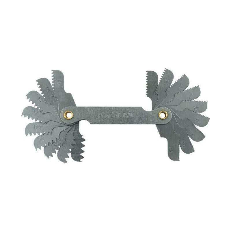 - Standard thread pitch gauge measures the number of threads per inch