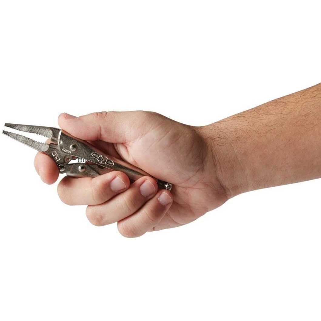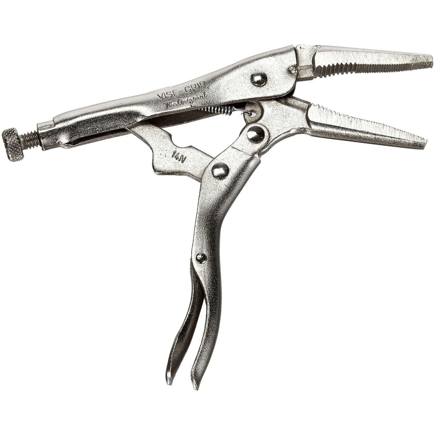 Turn screw to adjust pressure and fit work, convenient wire cutter, stays adjusted for repetitive use. Constructed of high-grade heat-treated alloy steel for maximum toughness and durability with hardened teeth are made to grip from any angle. Long, straight nose provides easy access in narrow, hard-to-reach places. Long, straight nose provides easy access in narrow, hard-to-reach places, ideal for precision work and hobbies, includes convenient wire cutter. Long, straight nose provides easy access in narrow, hard-to-reach places, ideal for precision work and hobbies, includes convenient wire cutter. Turn screw to adjust pressure and fit work. Constructed of high-grade heat-treated alloy steel for maximum toughness and durability. Hardened teeth are designed to grip from any angle.
