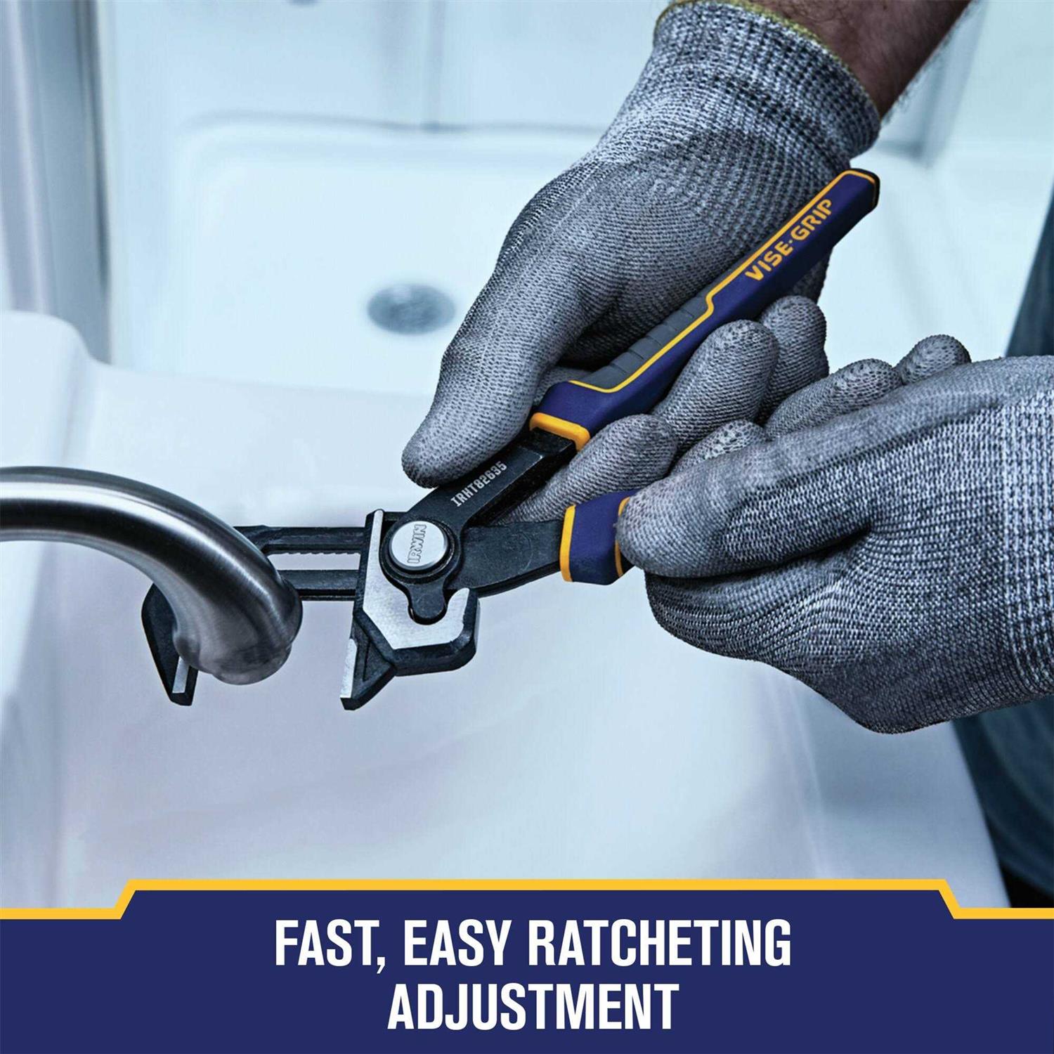 The IRWIN VISE-GRIP pliers wrench is designed with a groove Lock mechanism for fast and easy adjustments. Features smooth jaws to help provide damage free installations on chrome or plated fittings. Built with ergonomic handles for improved comfort and control.