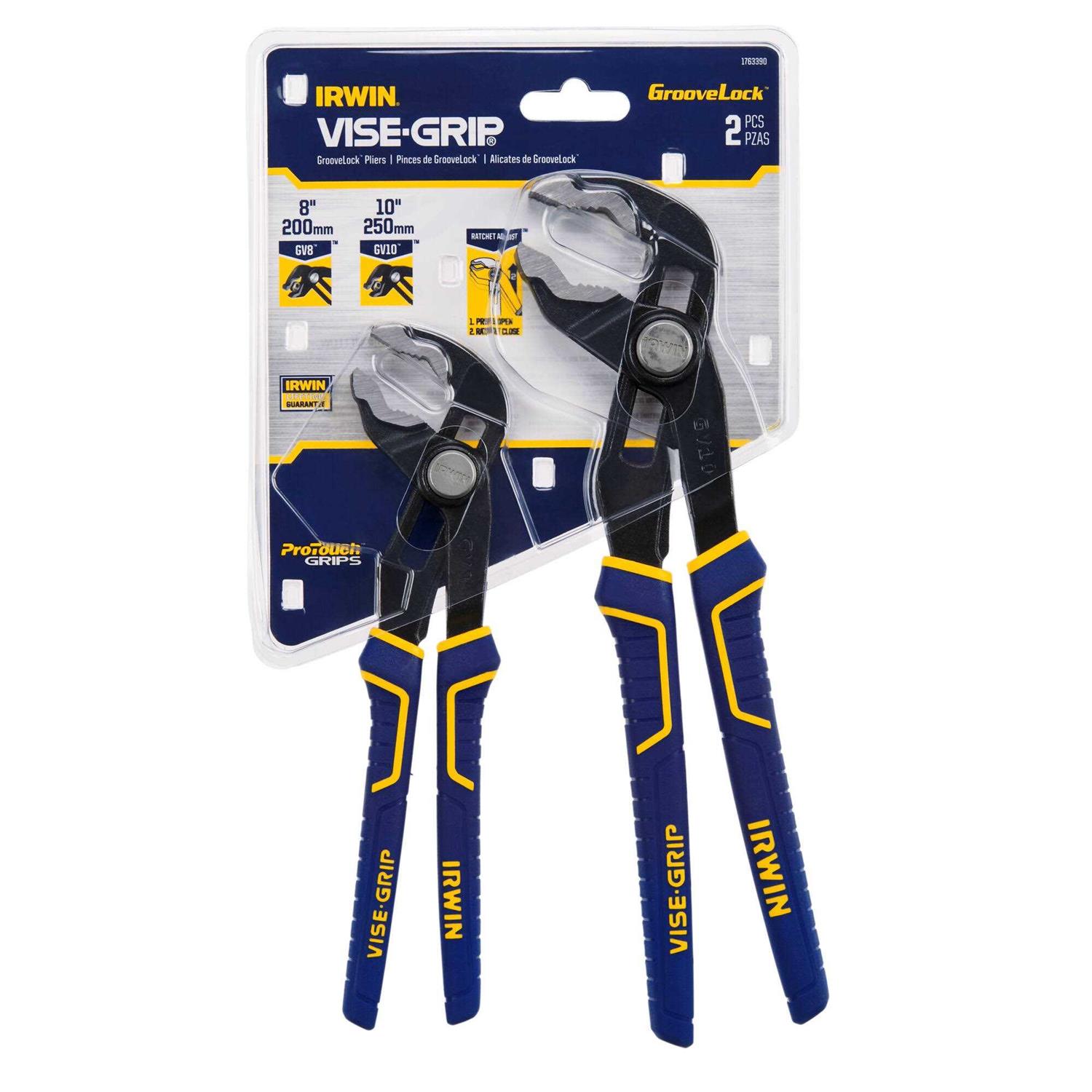- Set contains one 8-in GrooveLock plier and one 10-in GrooveLock plier